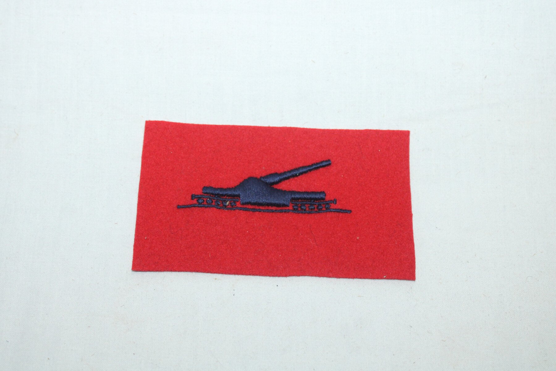 Insigne de bras de l'artillerie sur voie ferrée, brodé sur drap. Dimension de l'insigne 11.5cm.