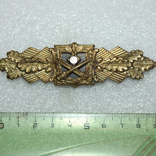 Cet insigne de combat rapproché est la version bronze .L'agrafe de combat rapproché (en allemand, Nahkampfspange) est une décoration militaire allemande du Troisième Reich, institué le 25...