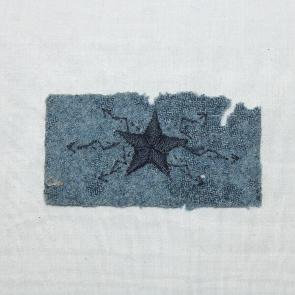 Insigne de bras de télégraphiste, brodé sur drap bleu horizon. Dimension de l'insigne 7.5cm. Plusieurs petit trou.