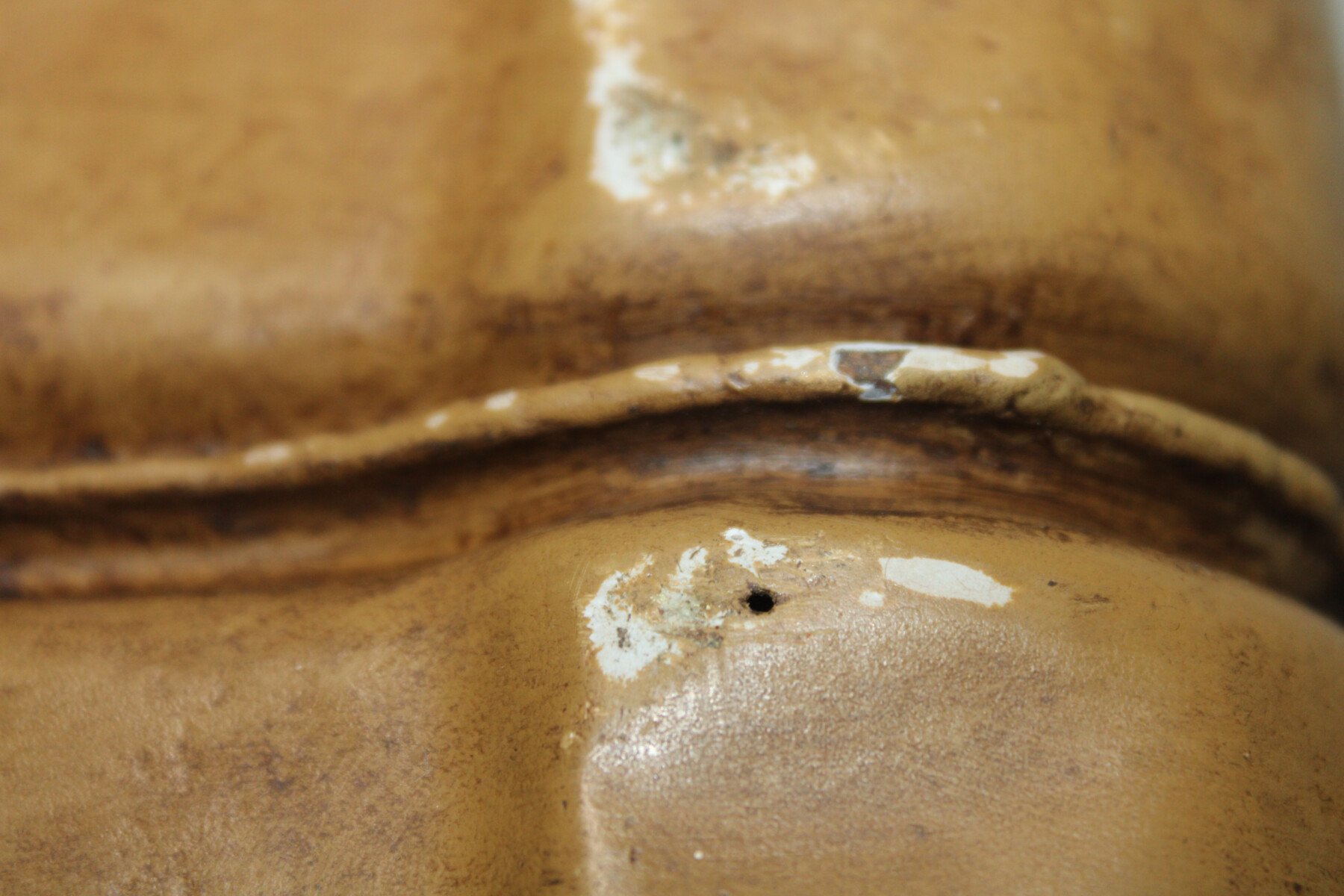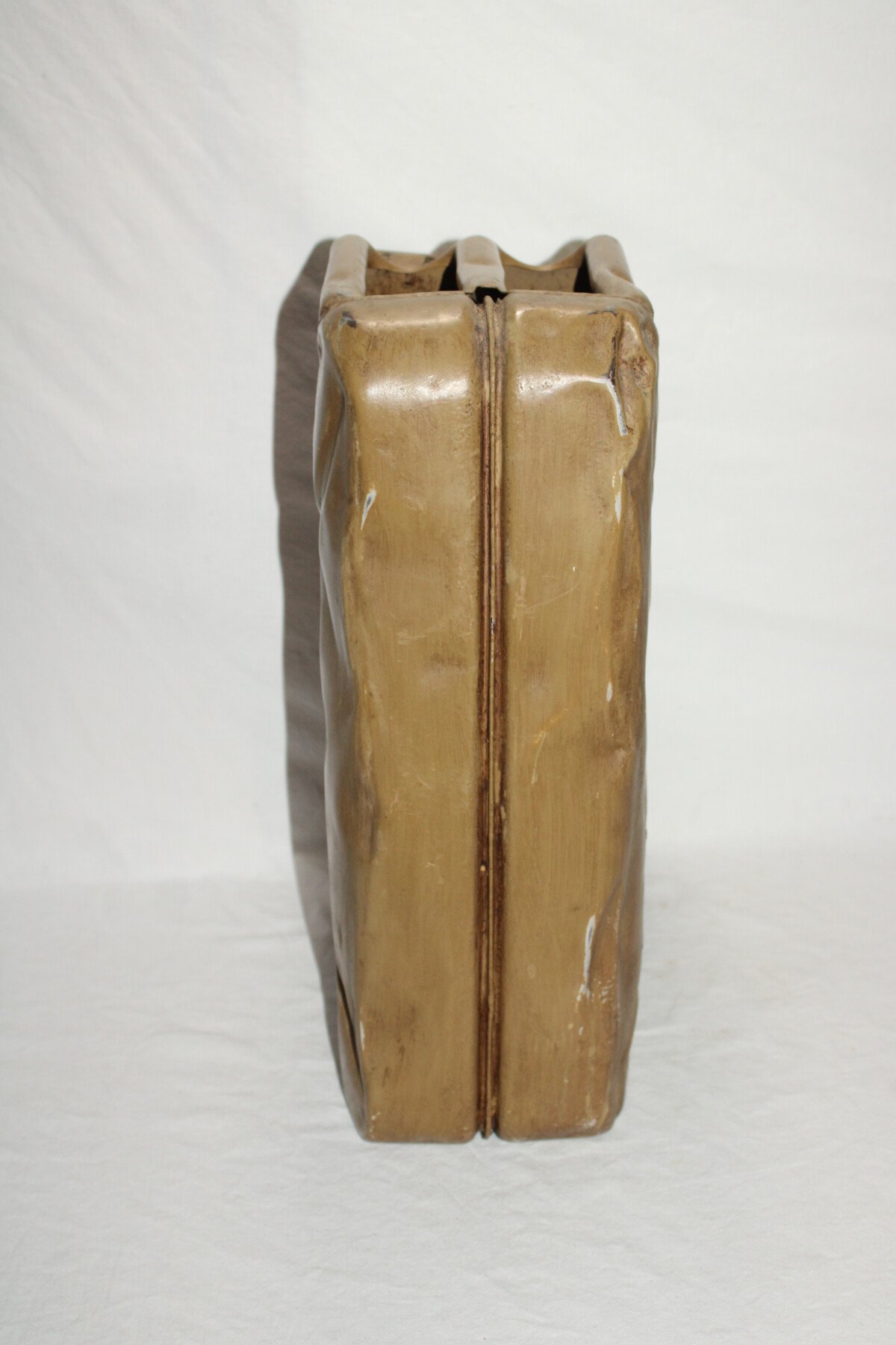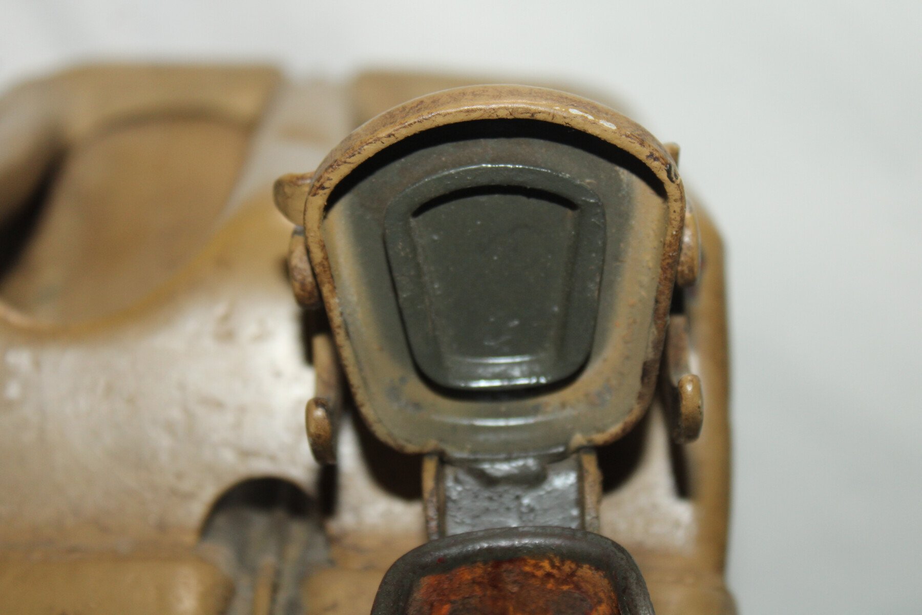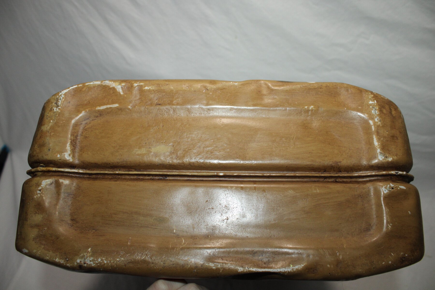 Jerrycan de fabrication pour la Waffen SS. Peinture sable non d'origine. Cabossé à plusieurs endroits. Un petit trous en dessous. Pièce authentique et garantie.
