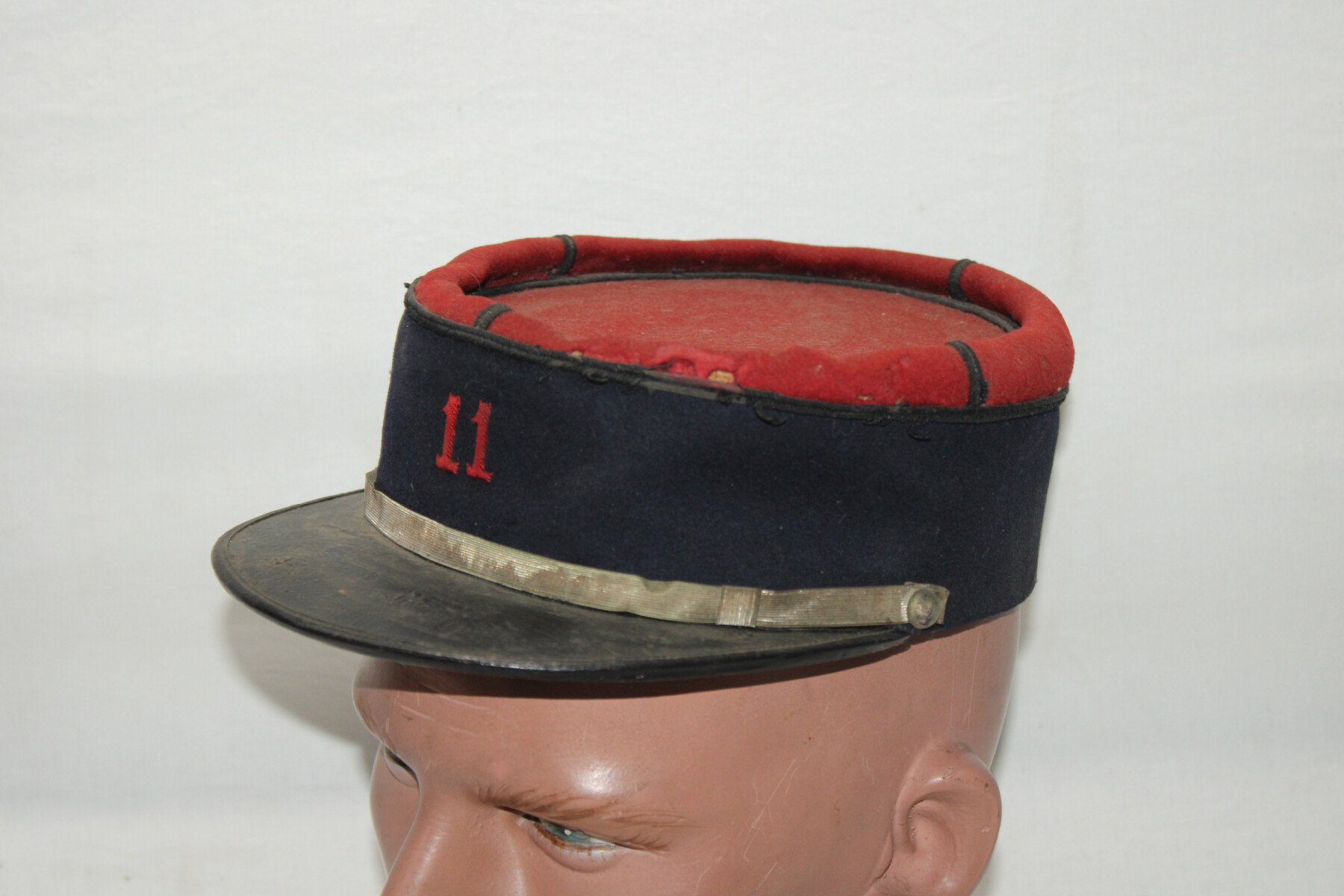 Képi modèle 1919 du 11éme escadron du train des équipages basé à Nantes. Fausse jugulaire et boutons lisse argenté. bandeau intérieur légèrement décousus. Petit manque sur le haut du képi....
