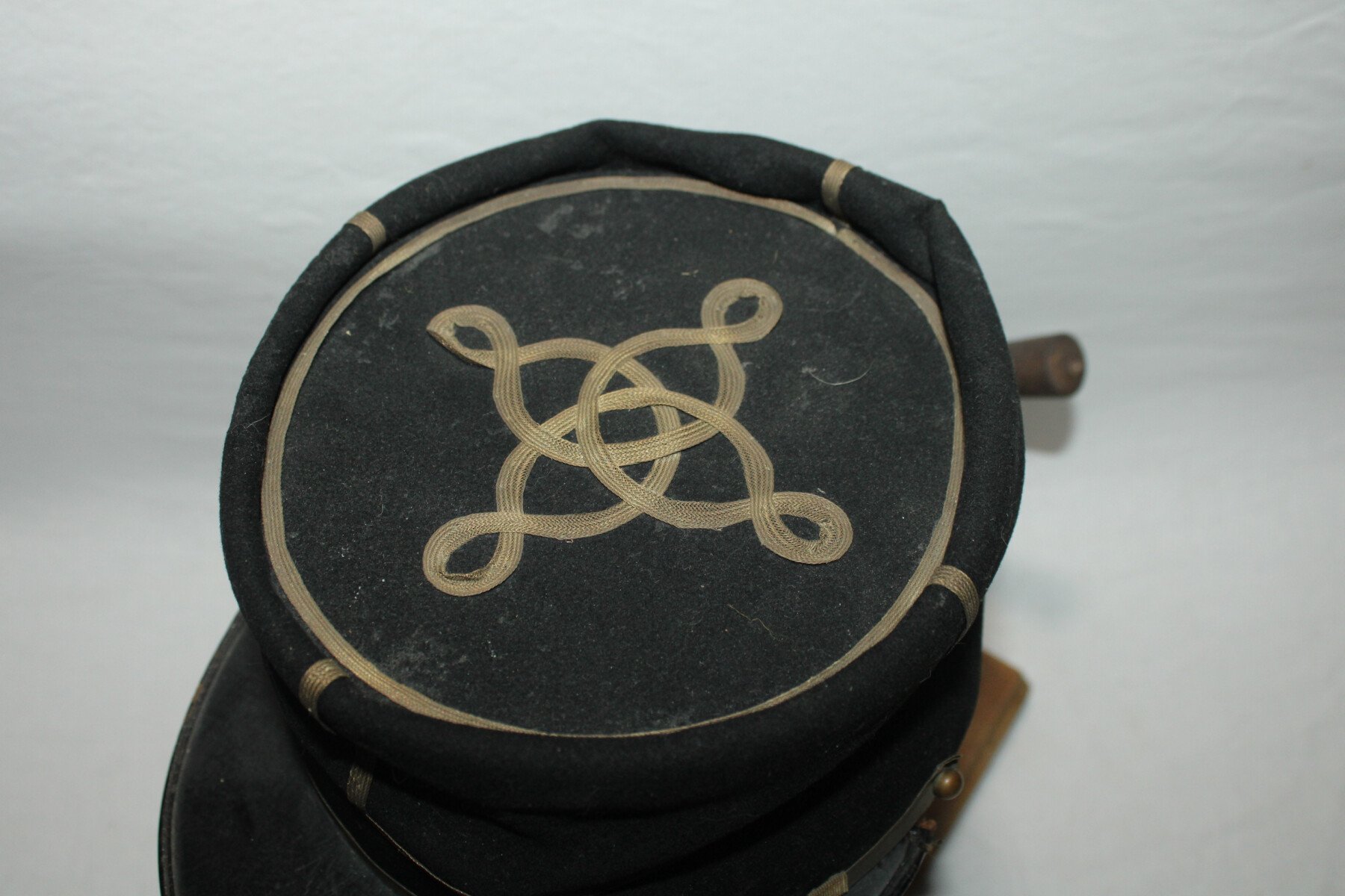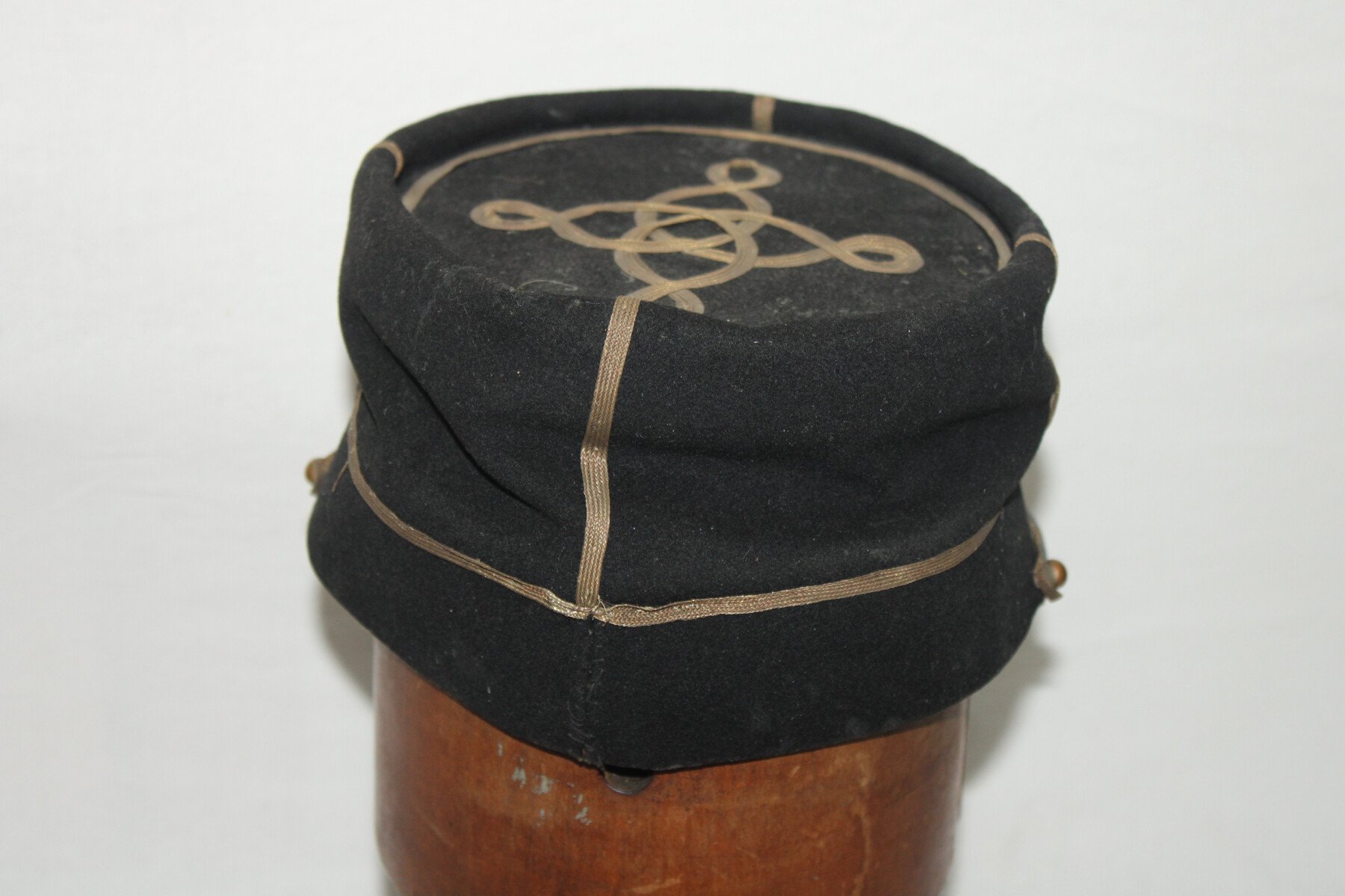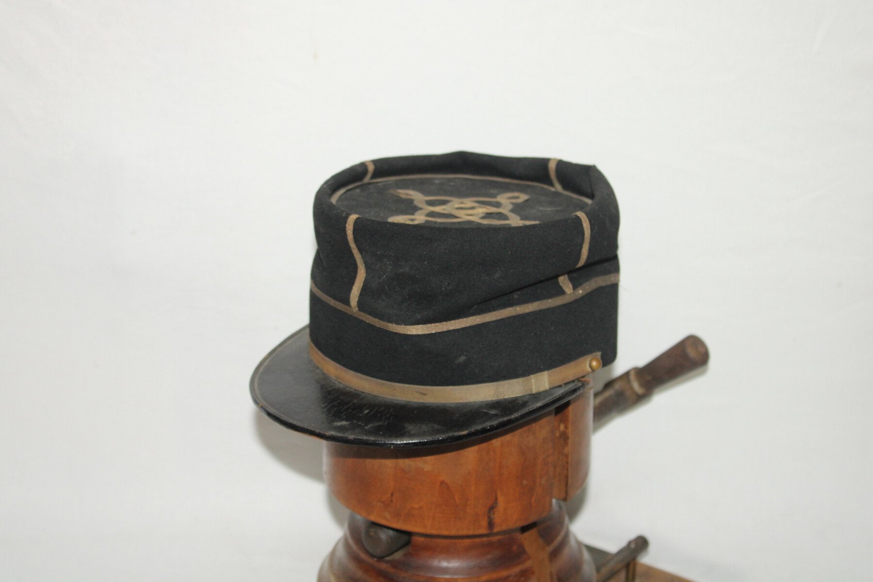 Képi de sous-lieutenant de cavalerie de coupe foulard ou Saumur. Bon état général. Taille 55-56 environ. Marque du tailleur.