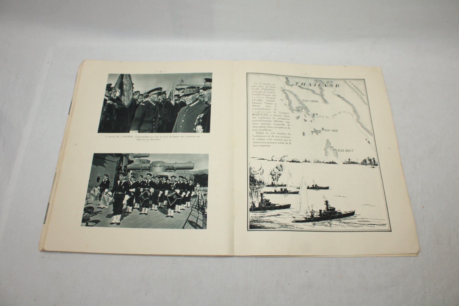 Livre la marine française depuis l'armistice, sur la marine de Vichy. Imprimer en 1941. Abimé sur la tranche. 54 pages.
