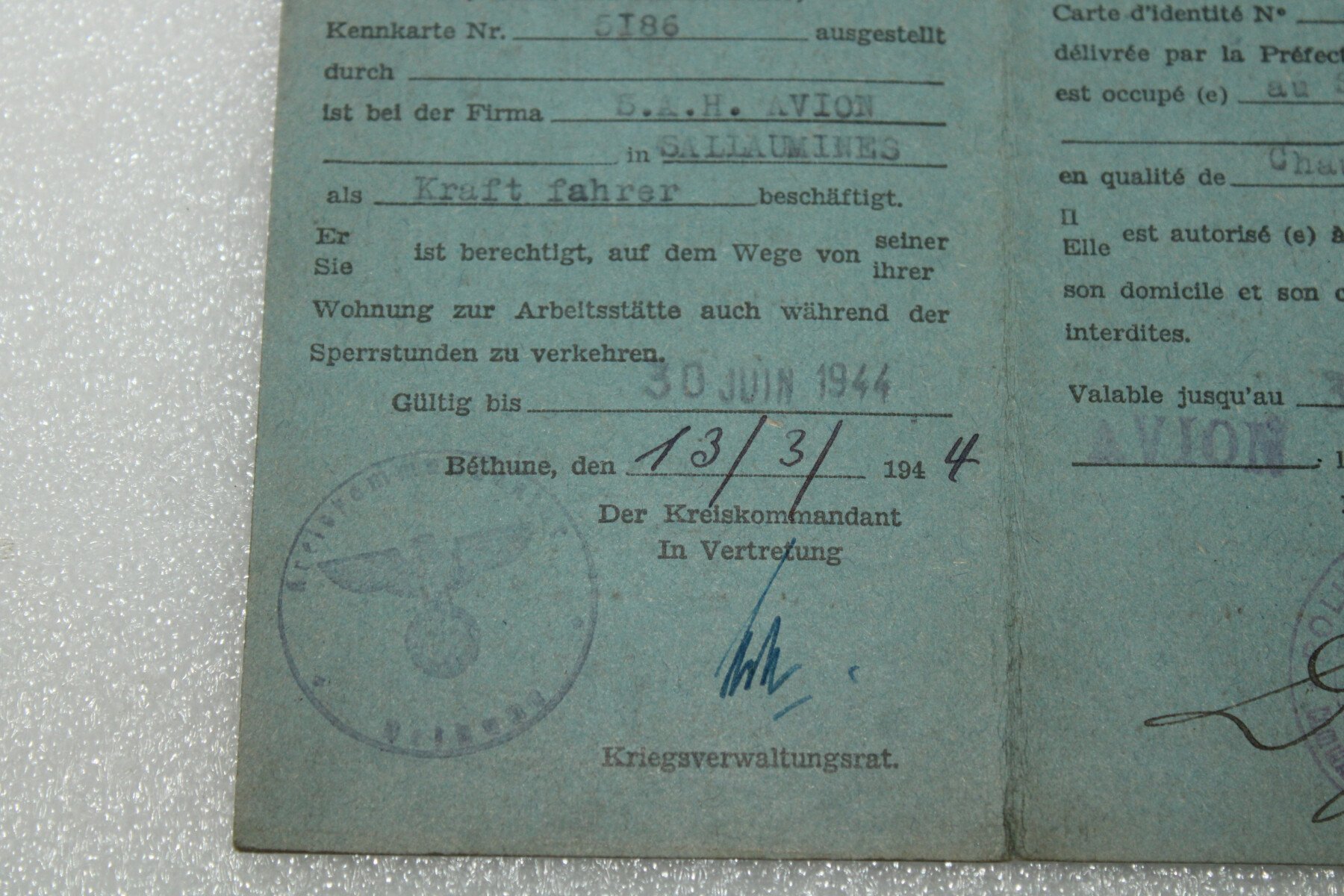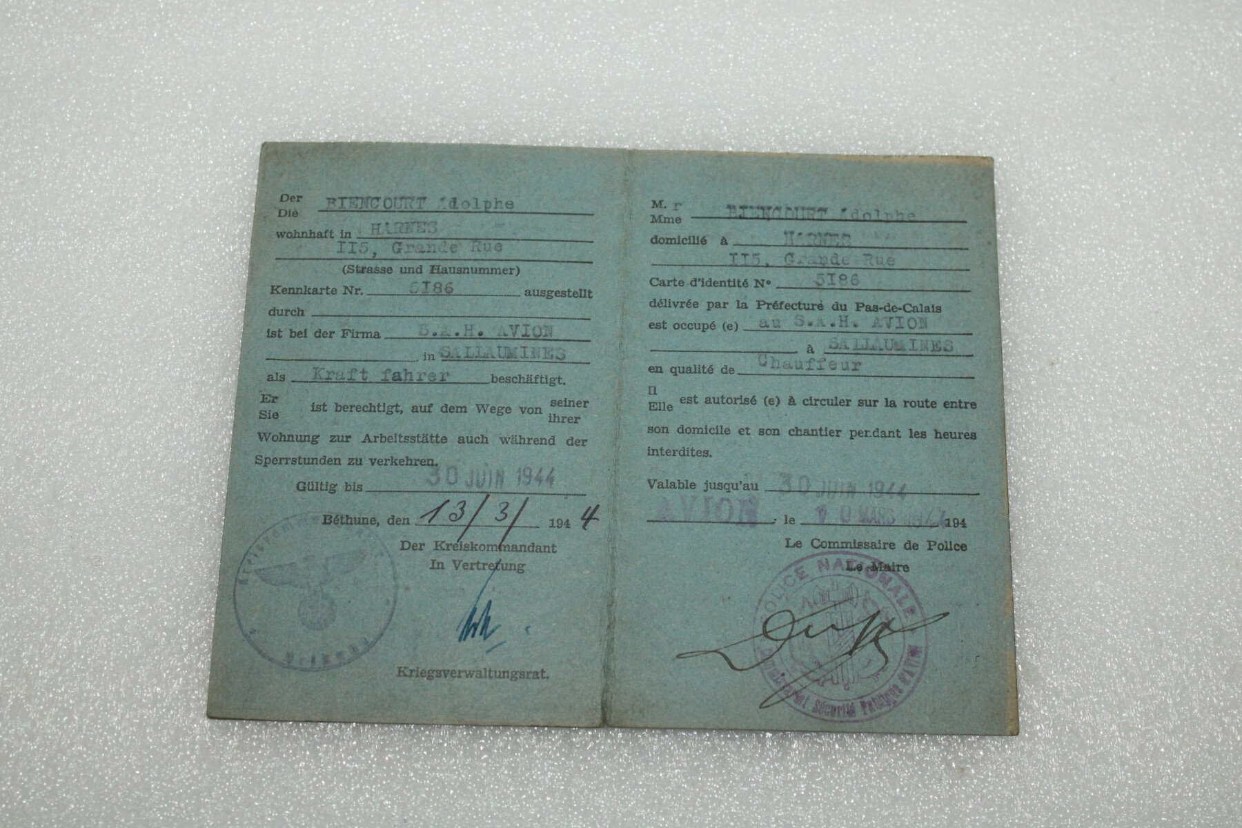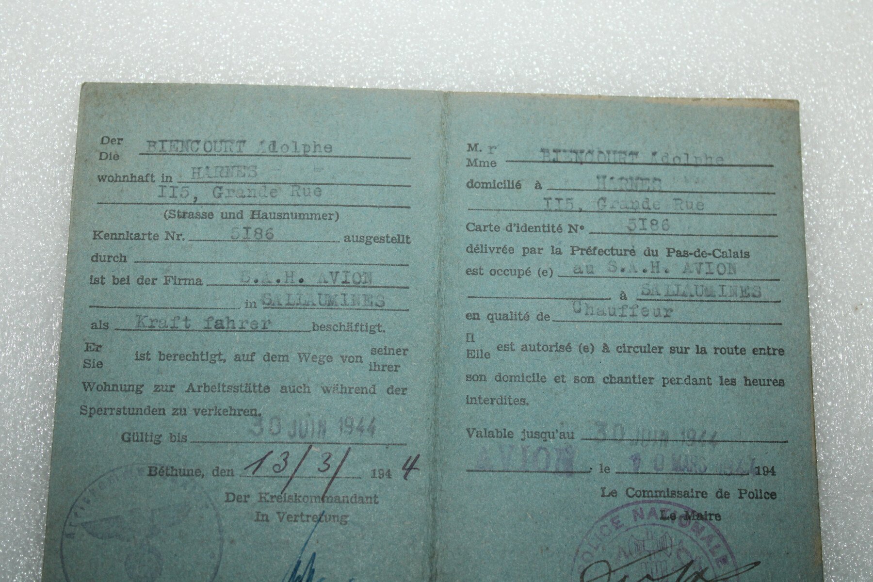 Laissez-passer de nuit pour le secteur de Lens-Liévin. Daté de 1944.