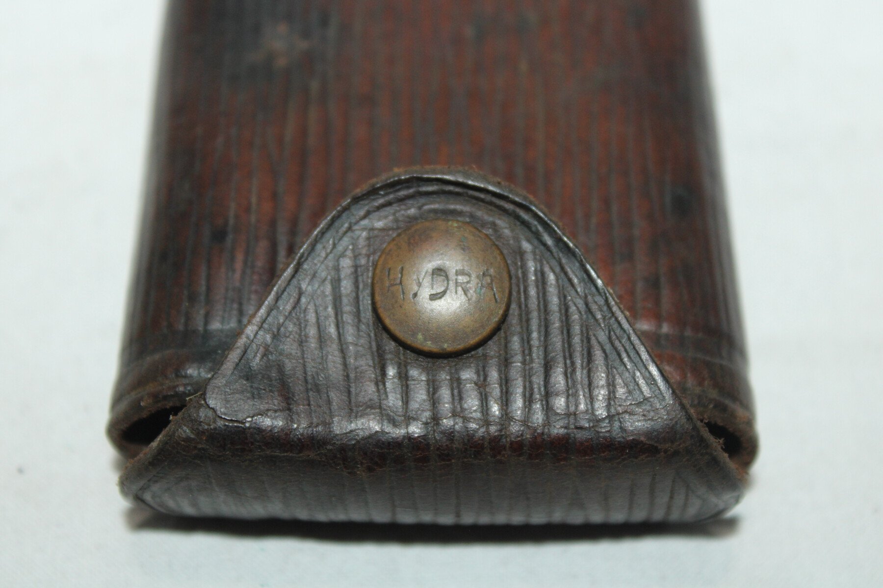 Lampe de poche en cuir gaufré de marque Hydra. Ampoule et carreau absent. Cuir souple.