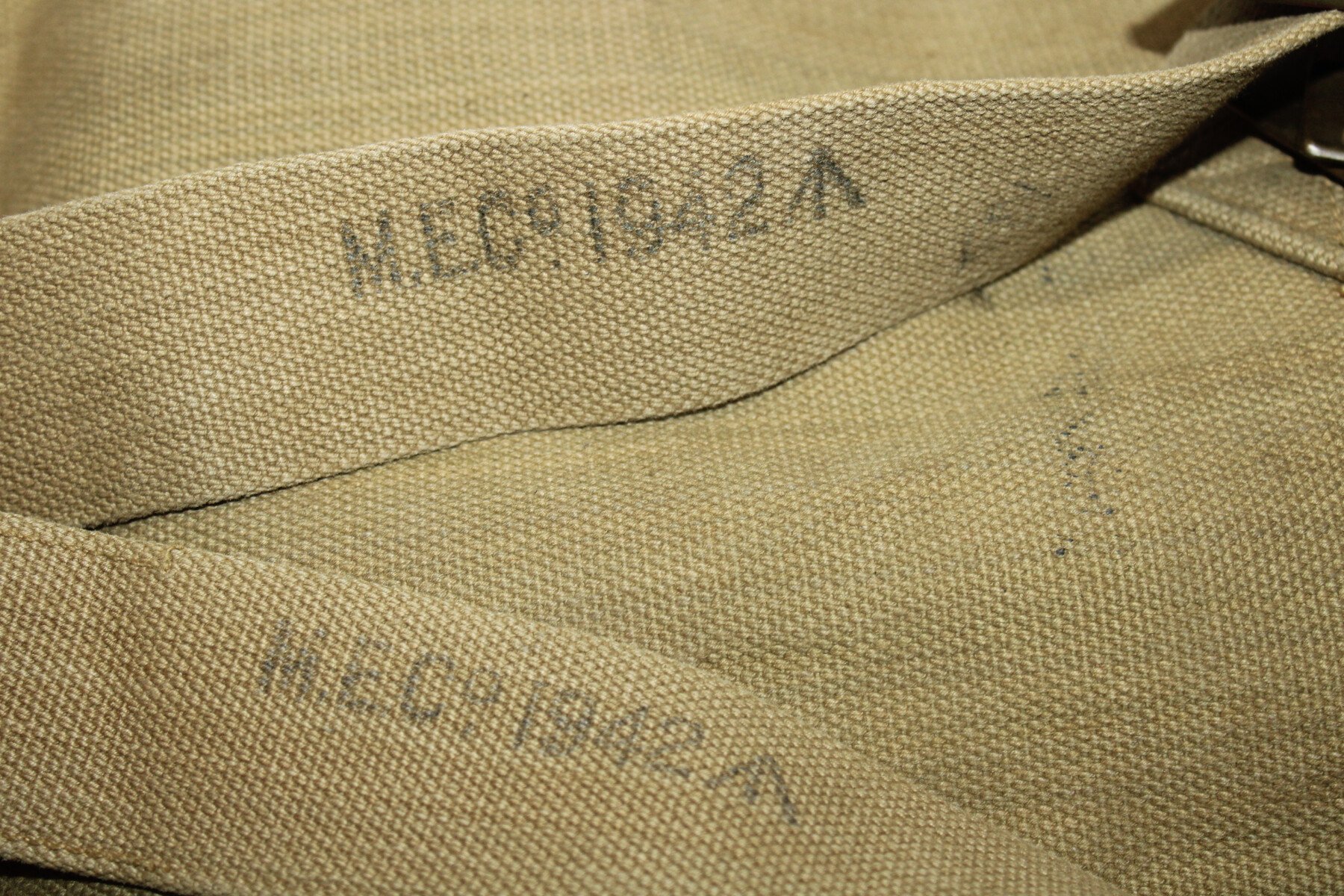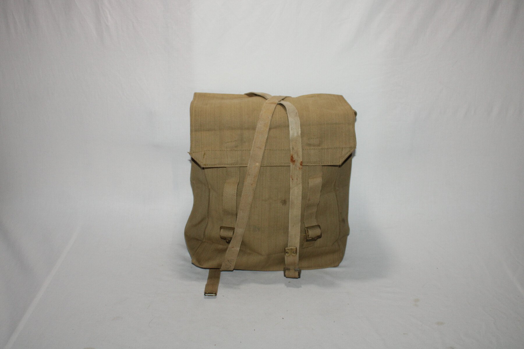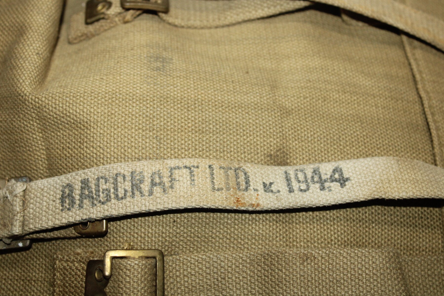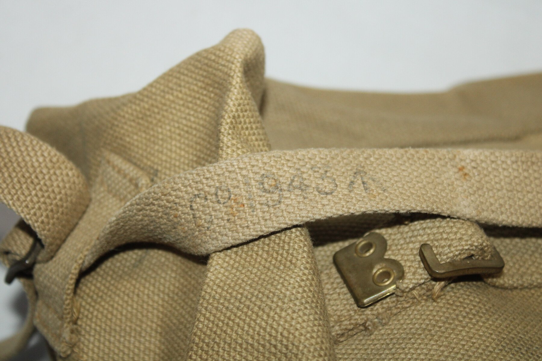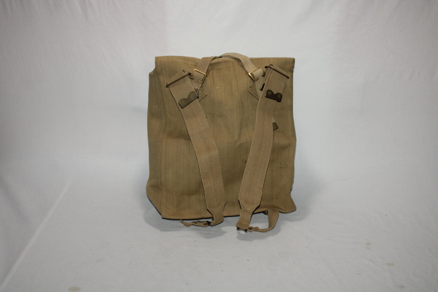 Large pack. Marqué et daté 1940, bretelles daté 1942 et sangles daté 1943 et 1944. Couleur sable.