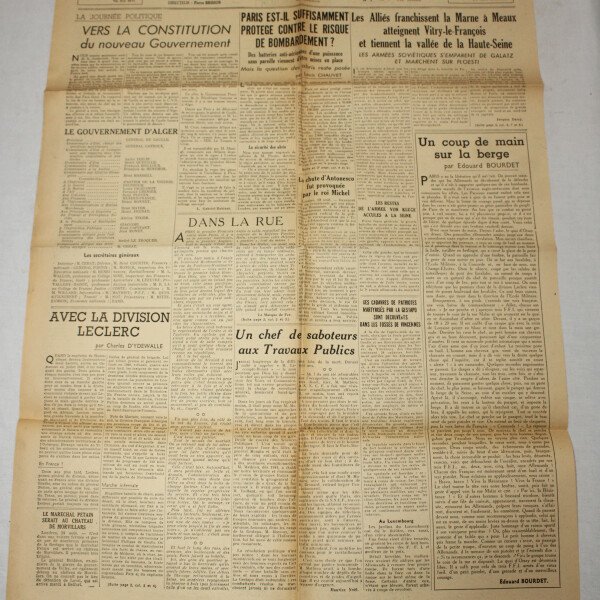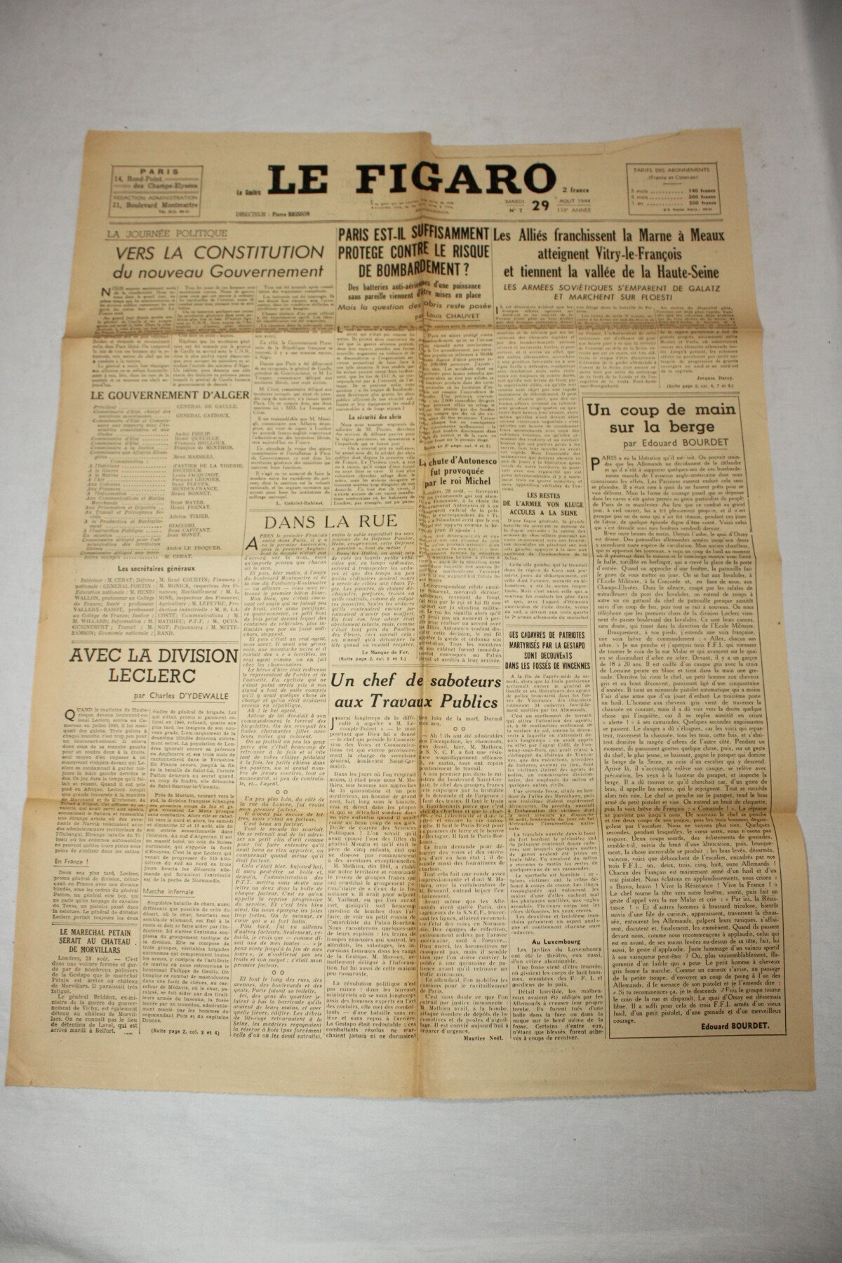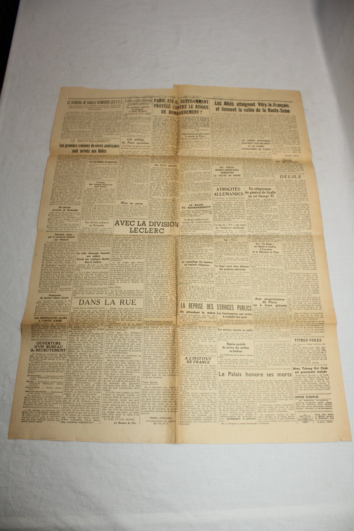 Journal "Libération" du Mardi 29 Aout 1944. 1 page, idéal à présenter sous verre.