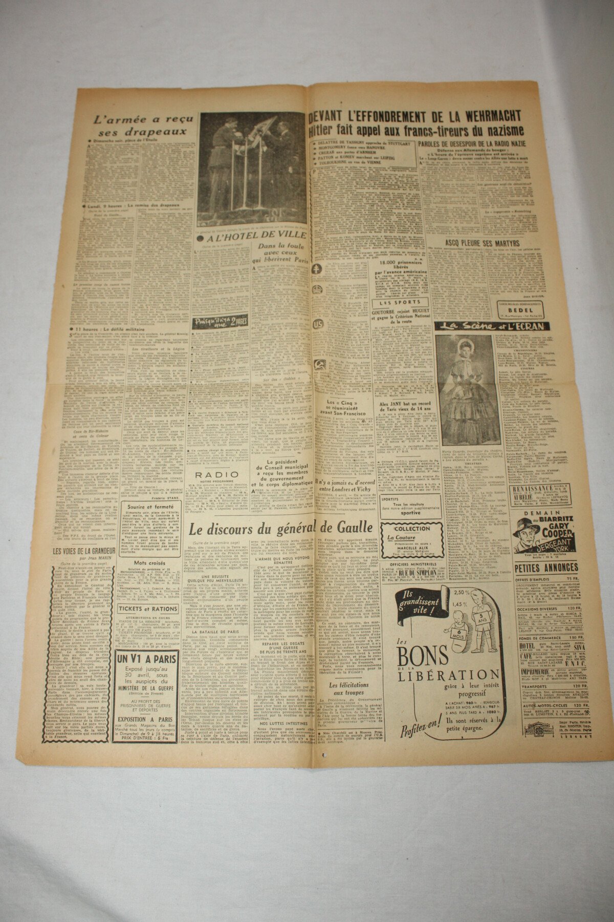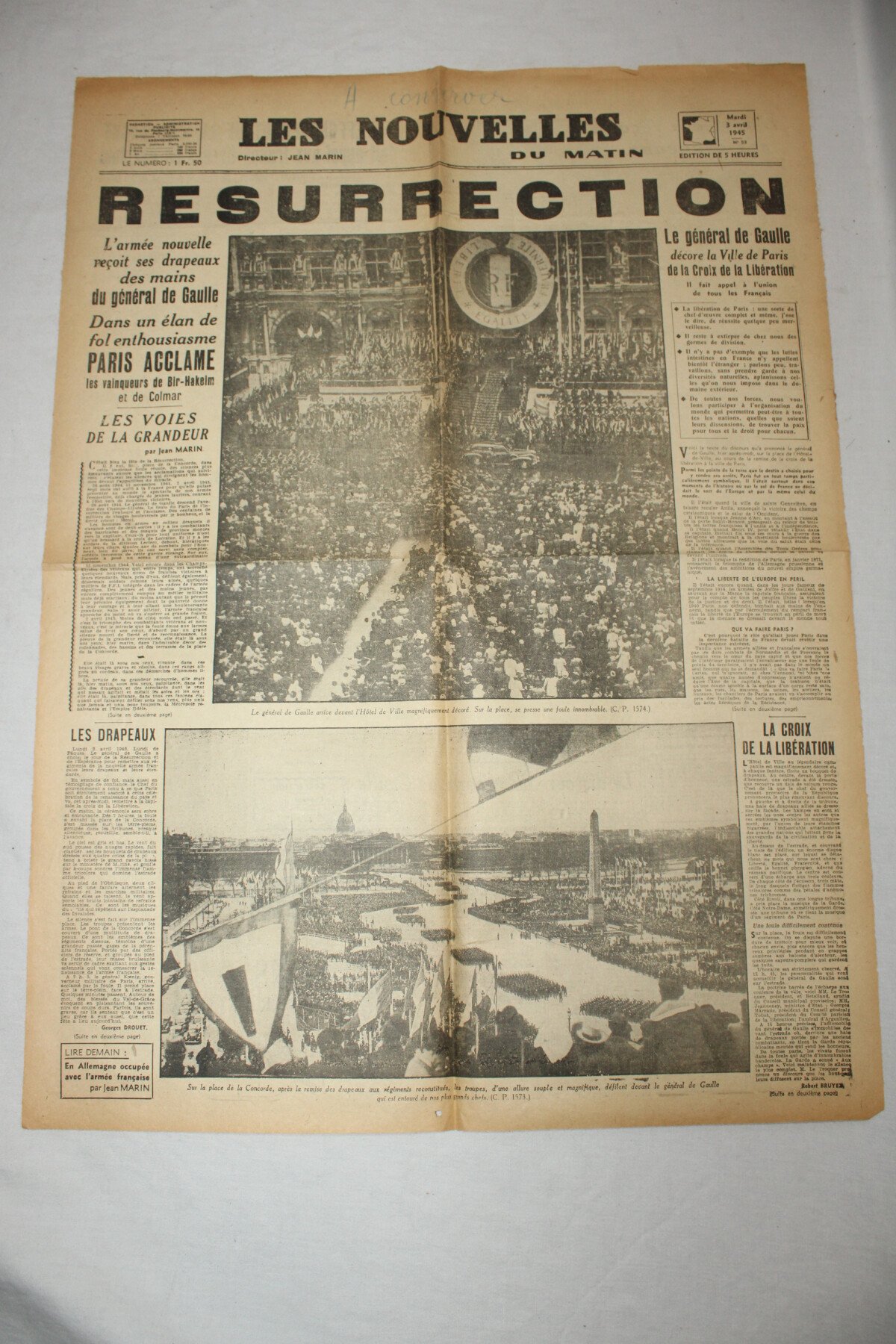 Journal "Les Nouvelles du matin" du Mardi 3 avril 1945. 1 page, idéal à présenter sous verre.