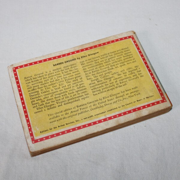 livre de poche Barren ground fourni au Gis par l'armed services Edition, pour leur distraction. 446 pages.