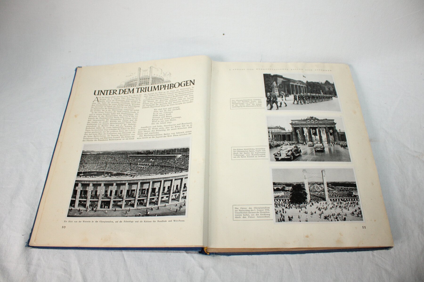 Album/livre Olympia 1936 sur les Jeux Olympique de Berlin. Quelques photos manquantes et pages abimées.165 pages.