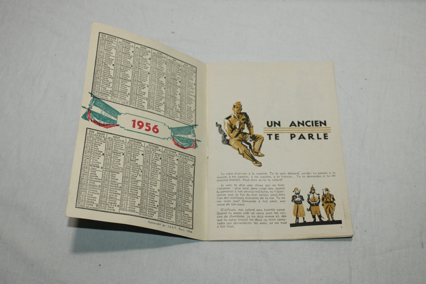 Petit livret donné au appelé du contingent. Daté 1956. Complet, 35 pages. Des papier sont glissé a l'intérieur dont un bon pour un paquet postal tamponné du 403e Régiment d'Artillerie...