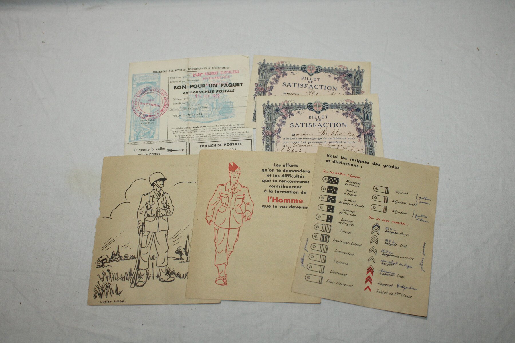 Petit livret donné au appelé du contingent. Daté 1956. Complet, 35 pages. Des papier sont glissé a l'intérieur dont un bon pour un paquet postal tamponné du 403e Régiment d'Artillerie Antiaérienne.