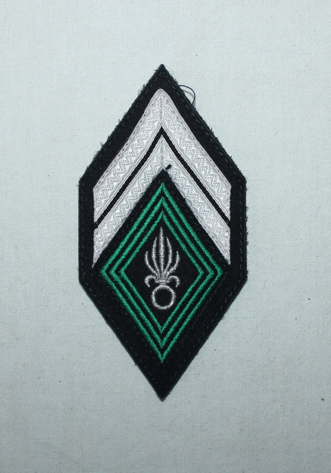 Fabrication actuelle du Losange de bras modèle 45 de sergent de la légion étrangère. Grenade argent de la cavalerie .