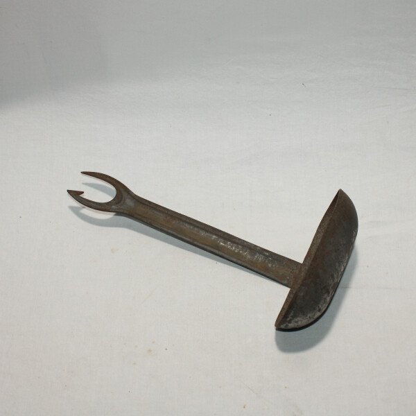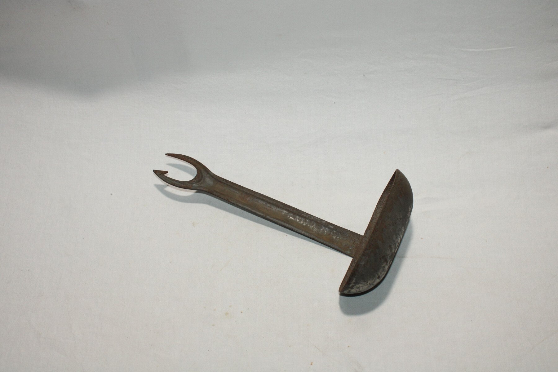 Grand louche en fer de fabrication italienne. Au bout du manche une fourchette pique. 30 cm de long.