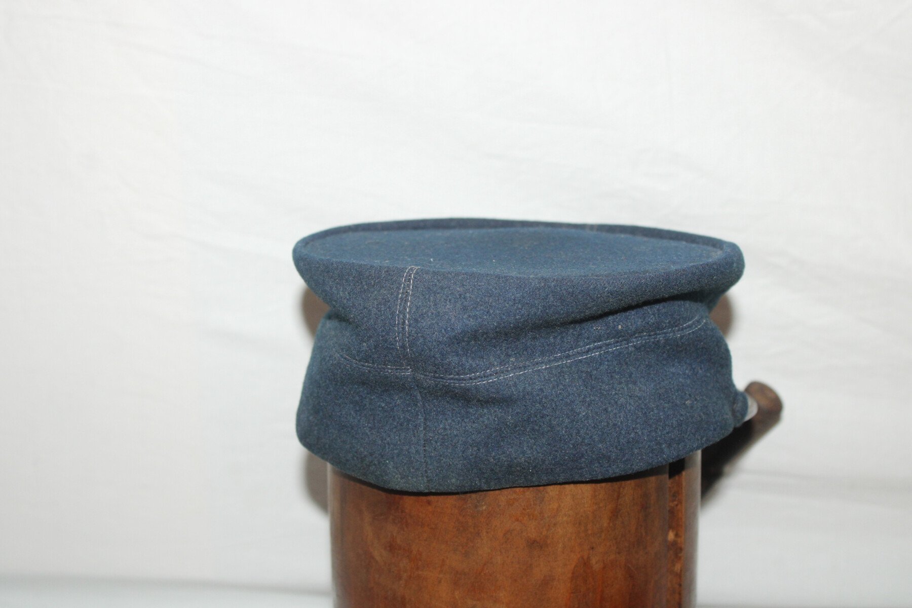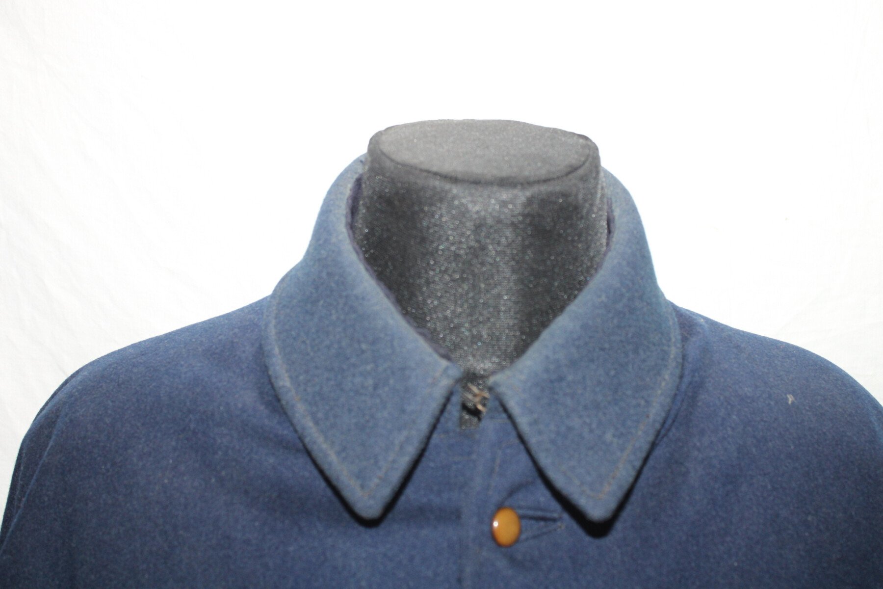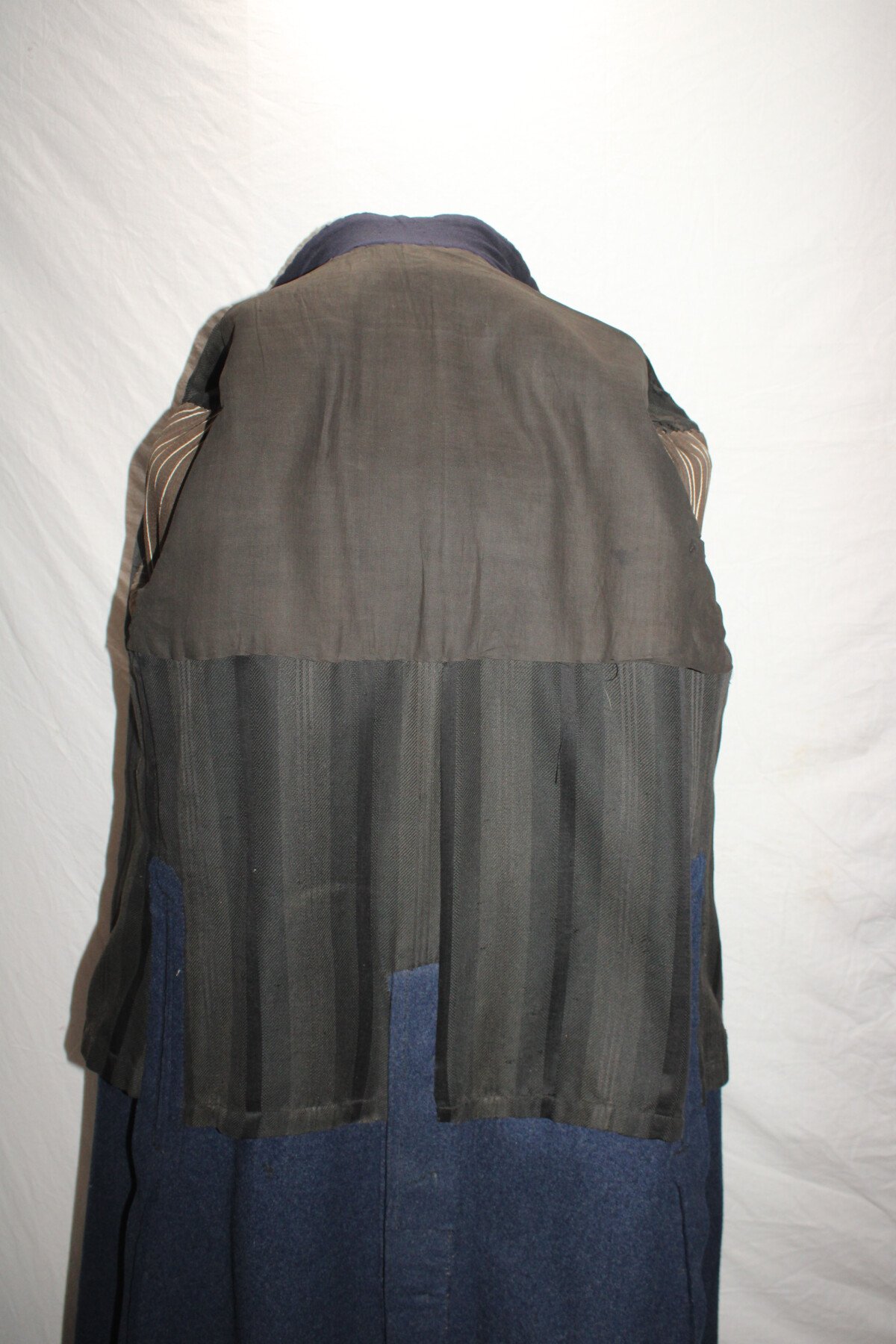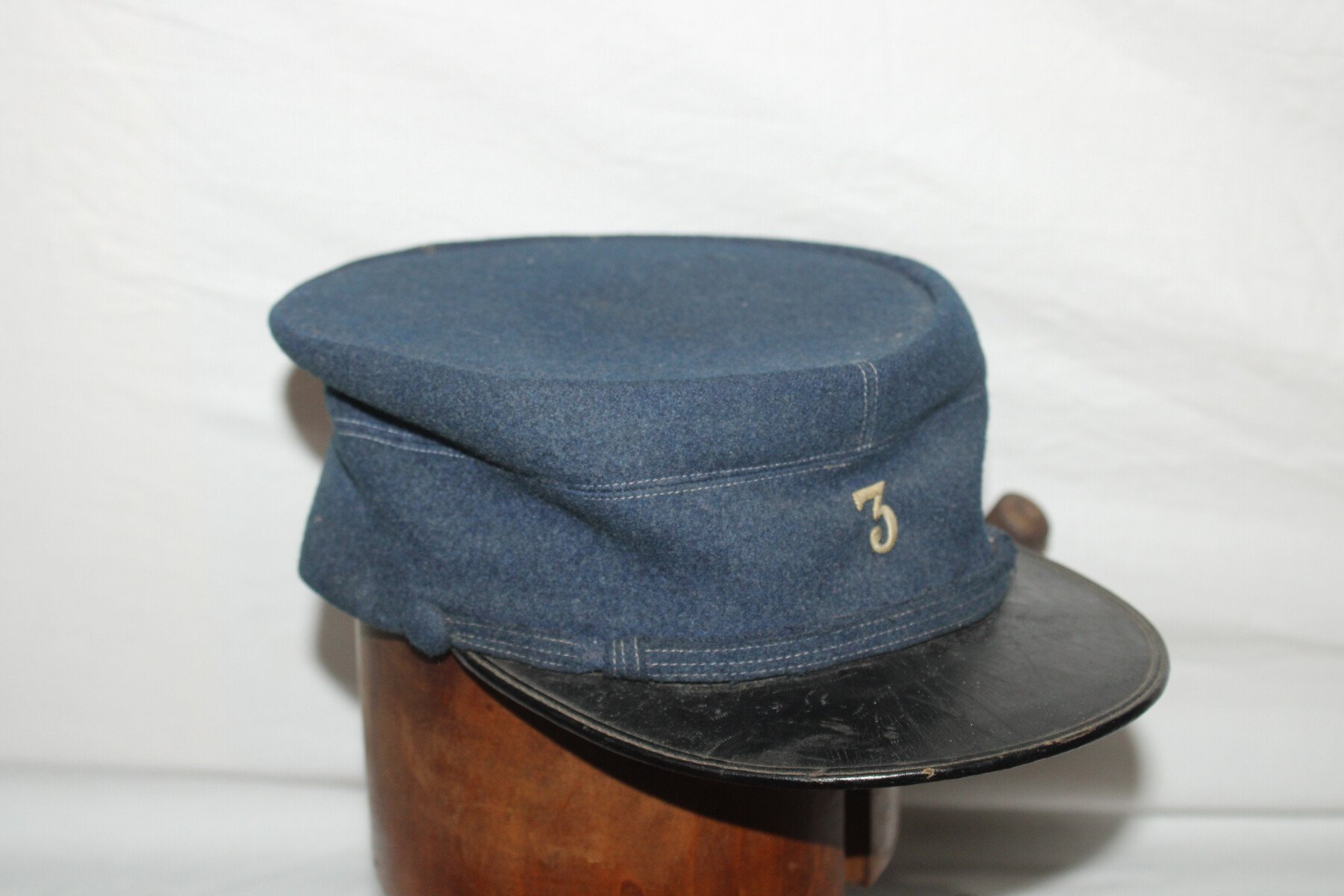 Beau manteau de cavalerie modèle 1872/1885 et Képi en drap gris de fer bleuté. Rotonde amovible, deux trous à l'arrière. Boutons argenté sur le manteau avant et en recouvert de drap à l'arrière. Un manquant sur la rotonde. Pas d'étiquette ou tampon de fabrication. Largeur d'épaule: 46cm, longueur de manche: 65cm. Hauteur total 182cm. Képi, boutons et jugulaire en drap gris de fer bleuté. Chiffre 3 en métal argenté. deux très petit trous sur le coté du képi. Hauteur 9cm, taille environs 56. Bel ensemble.