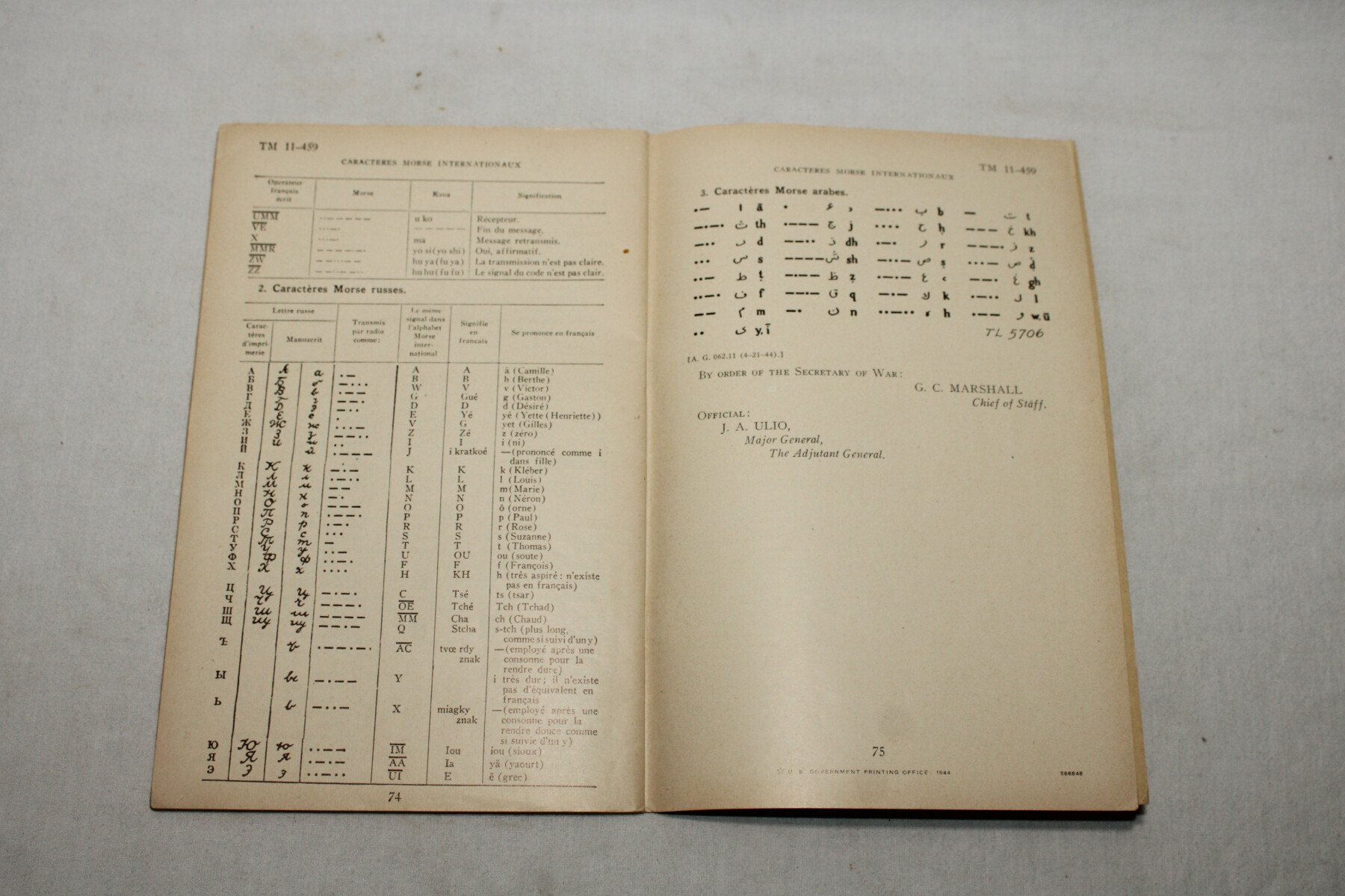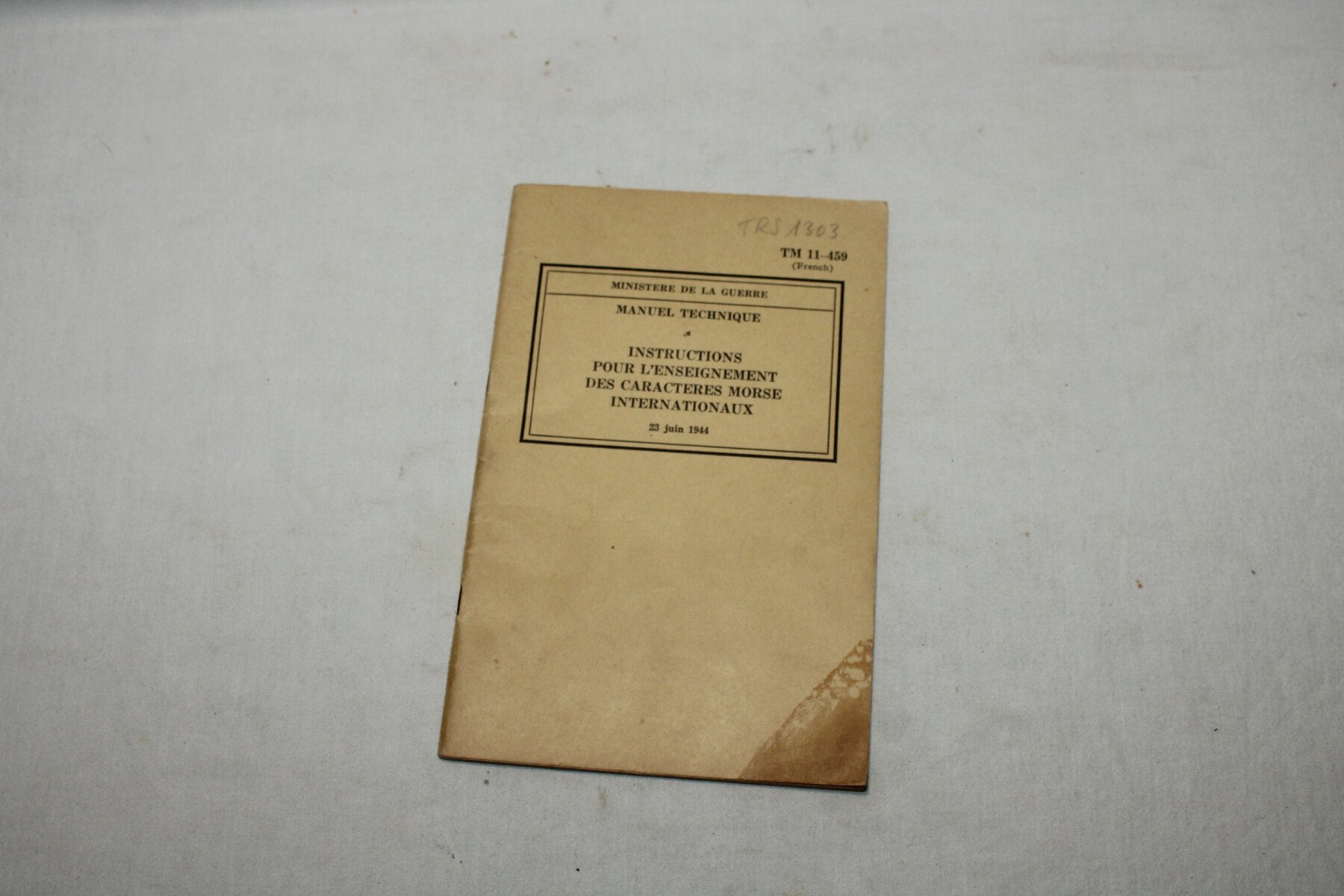 Manuel technique TM 11-459 du morse international. Fabrication américaine pour l'armée française. Daté juin 1944.