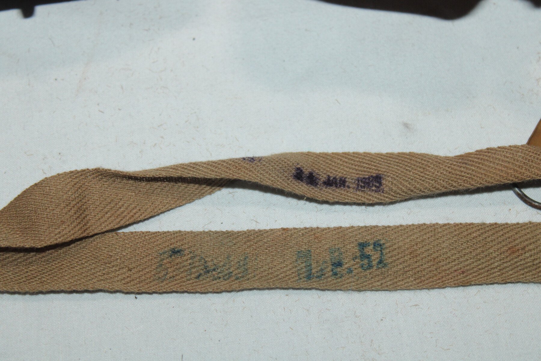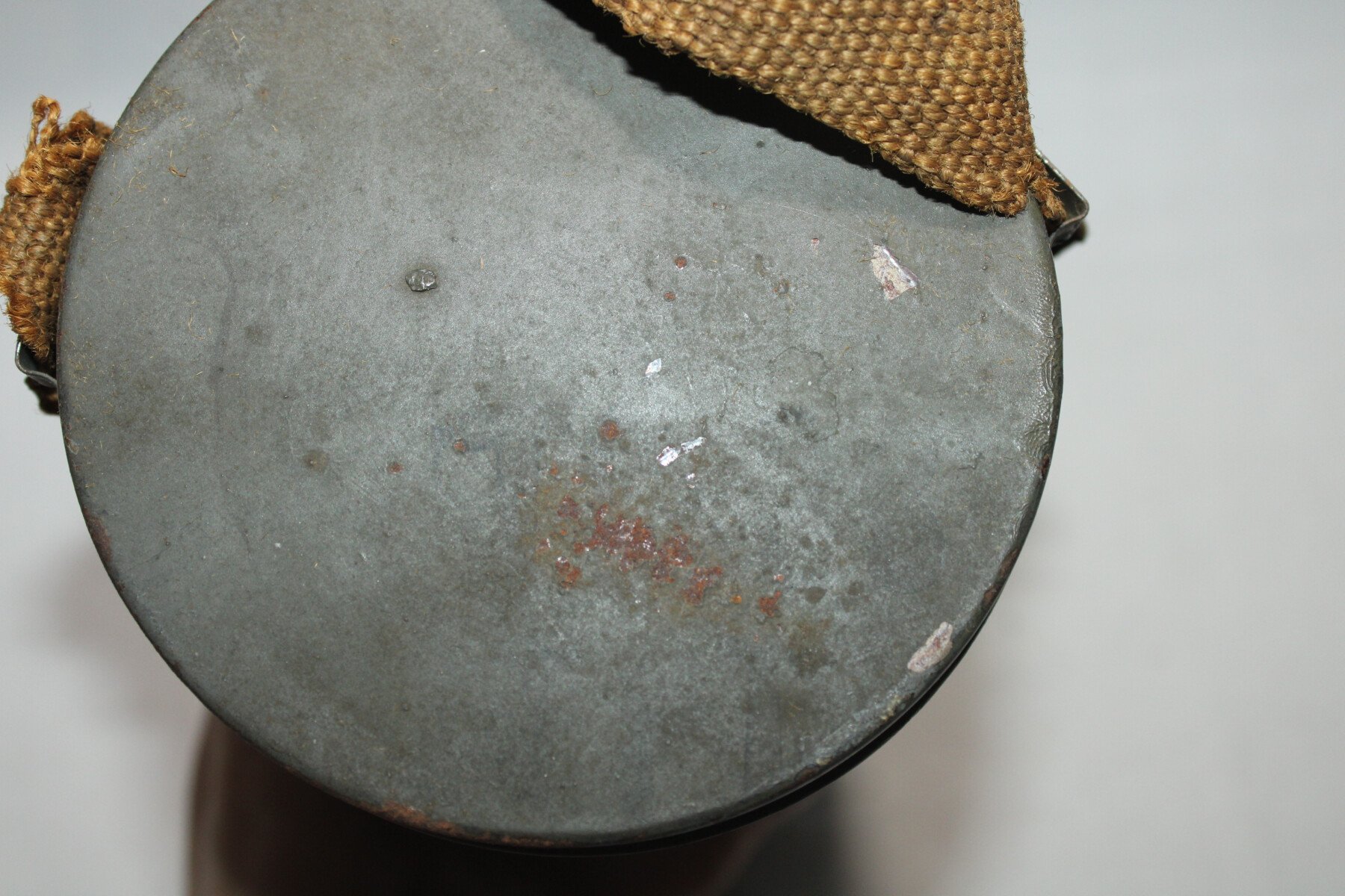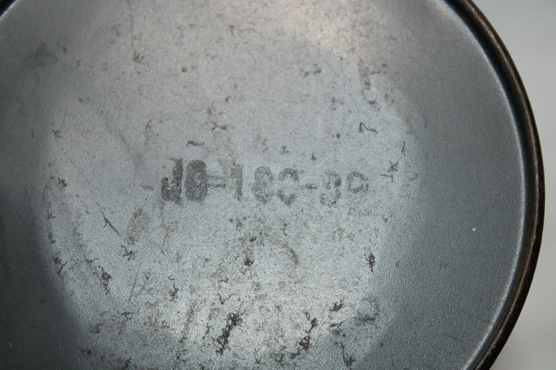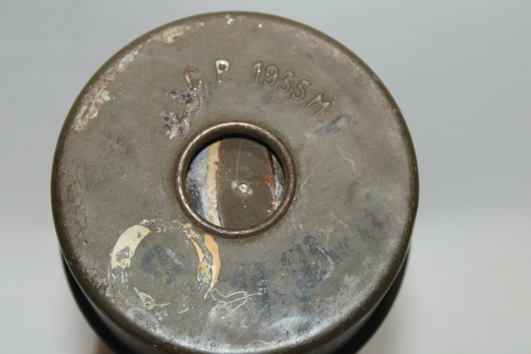 Masque à gaz de la défense passive, dans sa boite de transport. Masque complet et souple, une sangle détaché daté 1940, plusieurs autre date sur la sangle, cartouche daté 1940 retamponné 1944 et 1969 et boite daté 1939. Quelques déchirures sur la sangle mais encore solide.