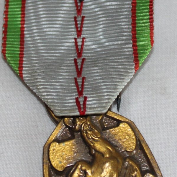 Médaille commémorative de la guerre 39/45 avec 2 barrettes miniatures France et Afrique, épinglette présente.