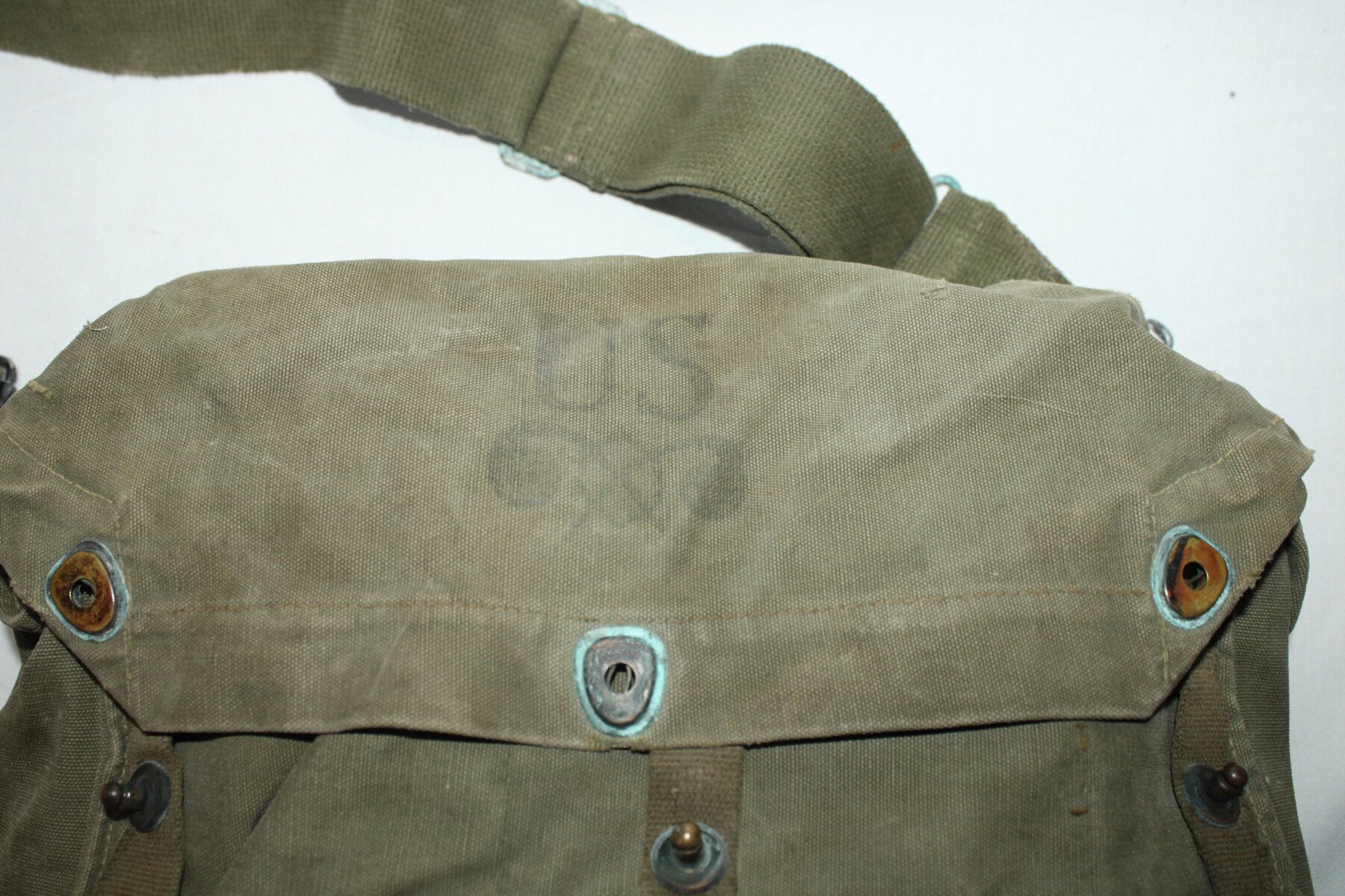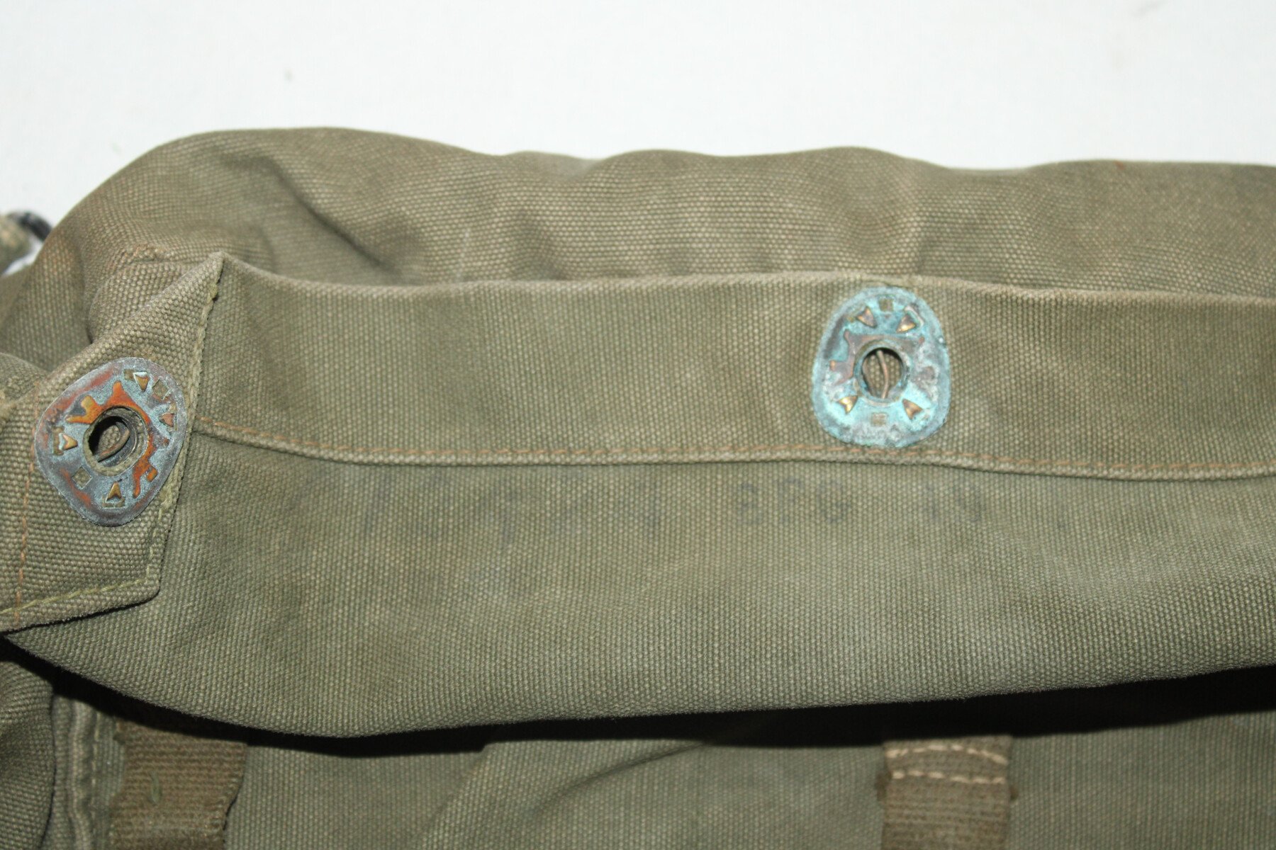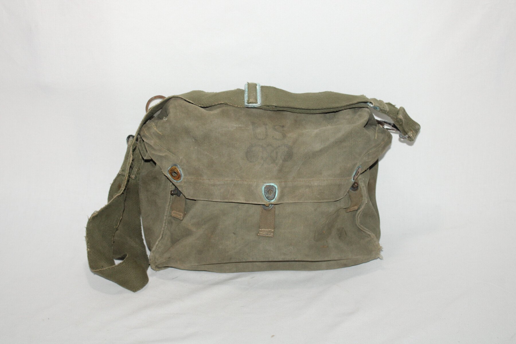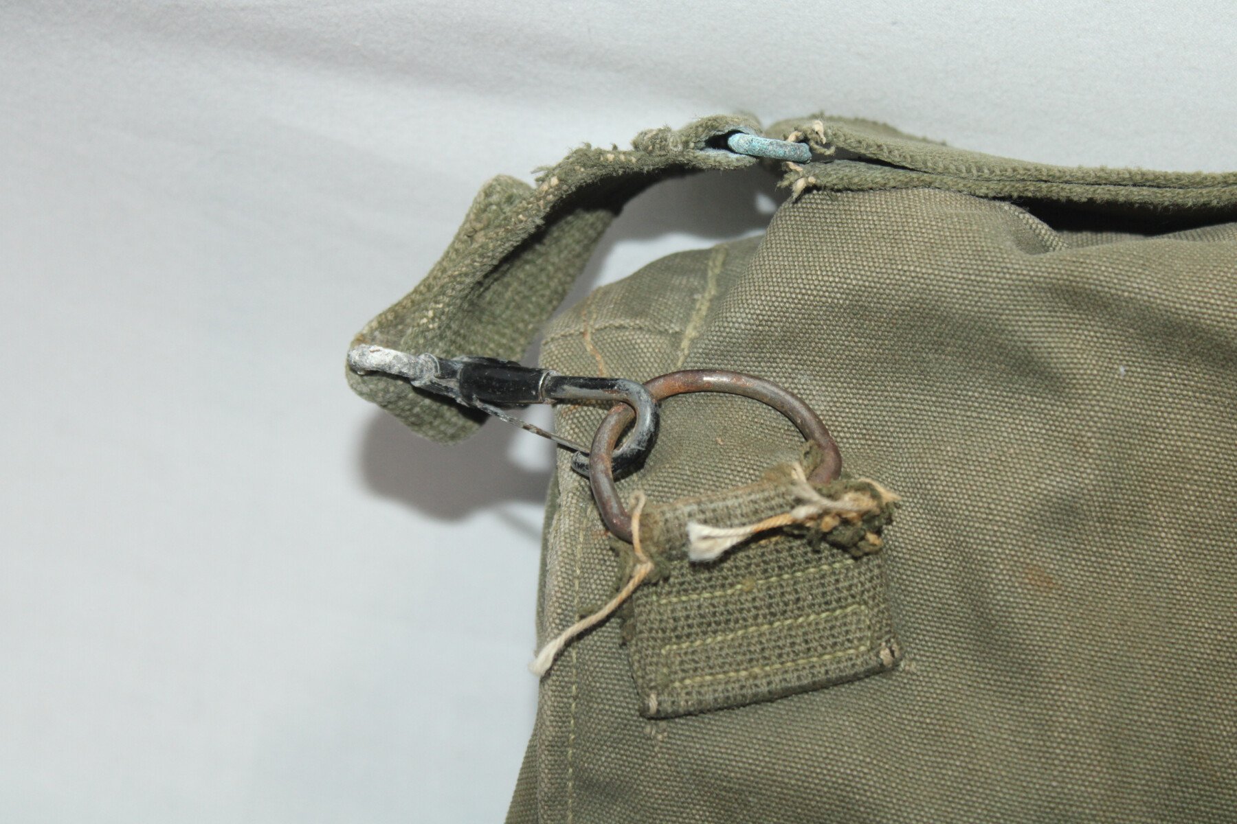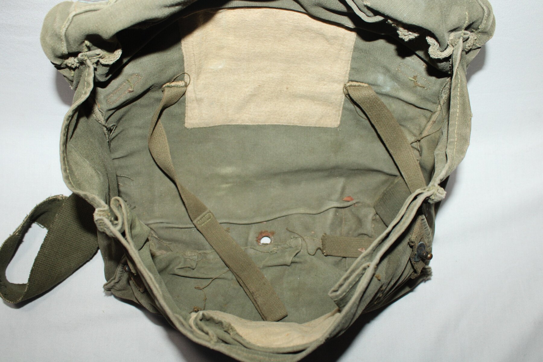 Musette M6 pour masque à gaz M1A1, couleur od7. Un intérieur de pression cassé. Marquage à l'intérieur.
