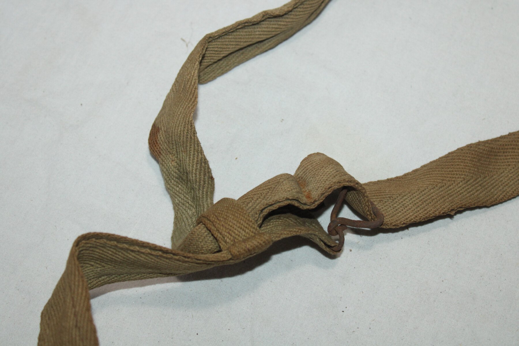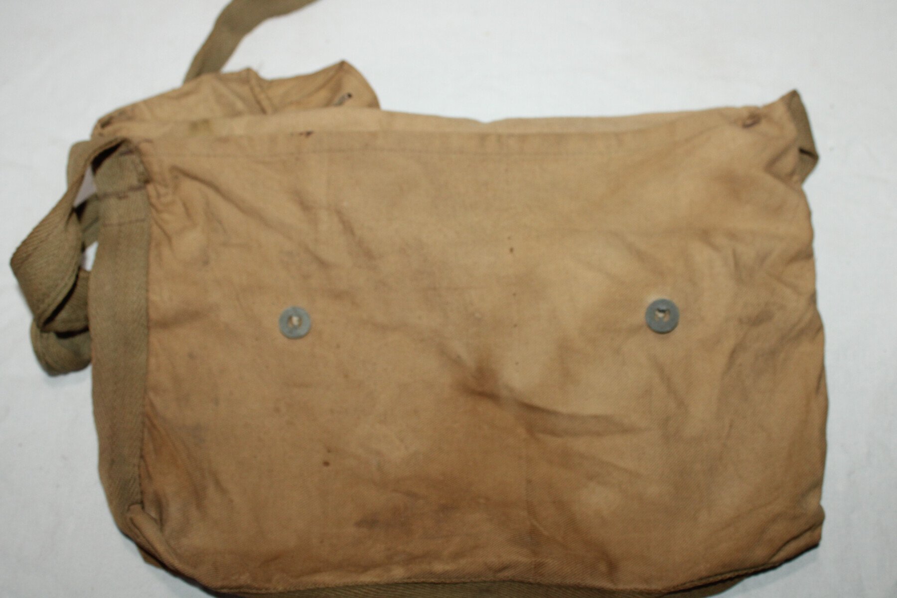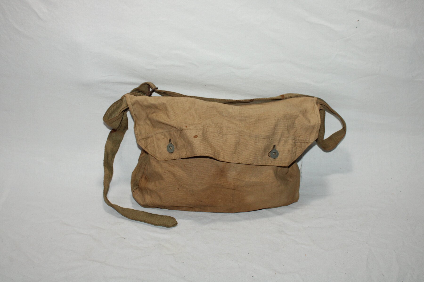 Musette modèle 1892 en toile cachou état d'usage, boutons équipements militaires. Musette tamponné.