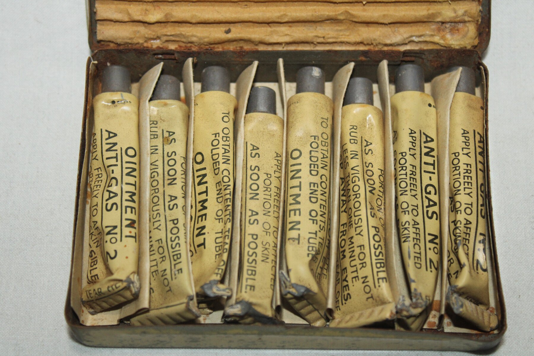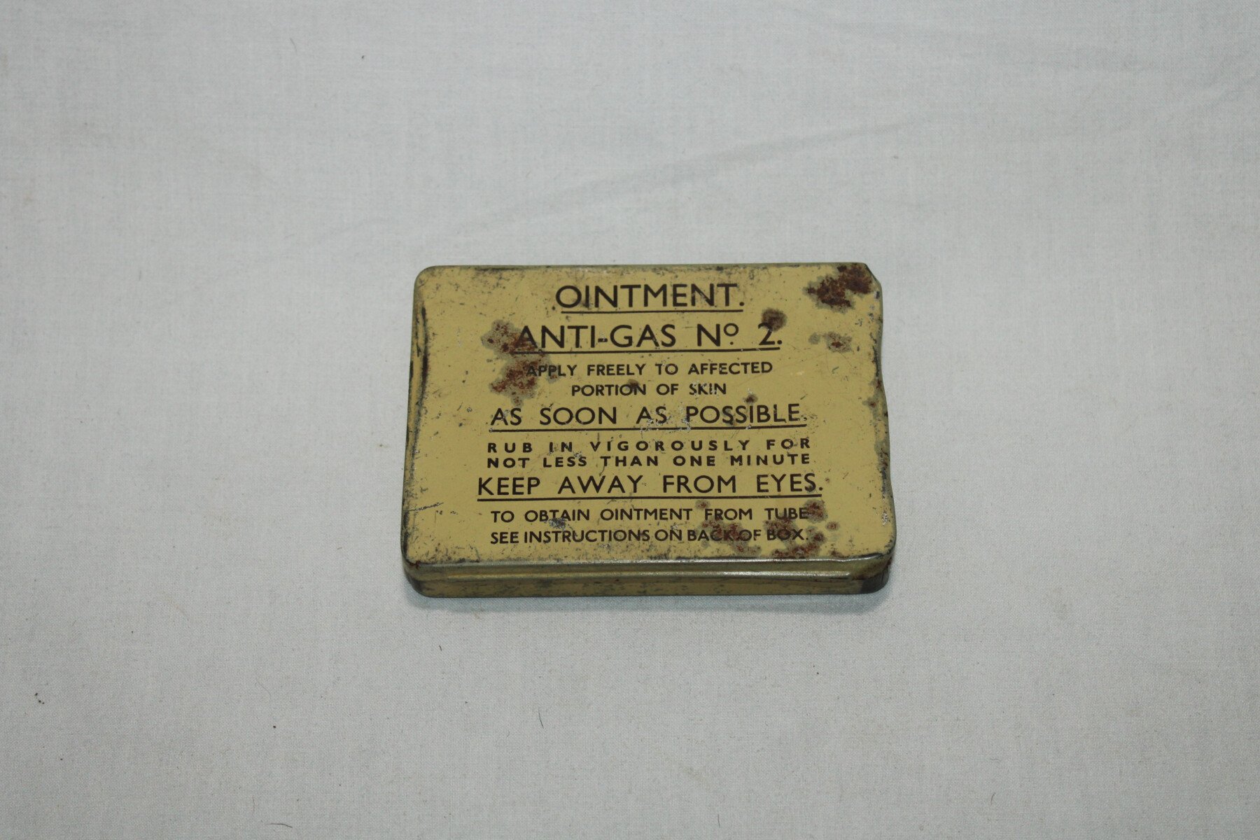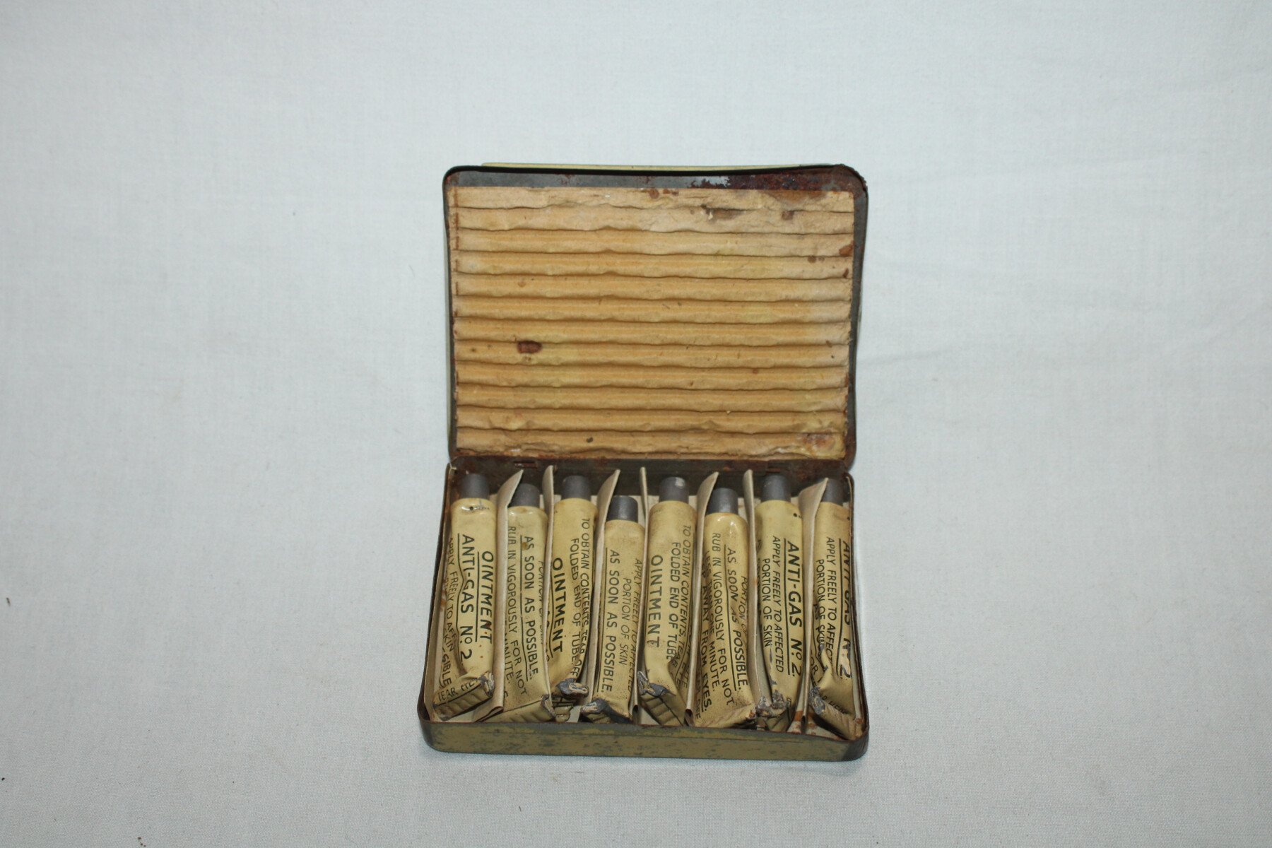 Boite de ointment anti-gas n°2 pleine, boite non daté. Tube en bon état.