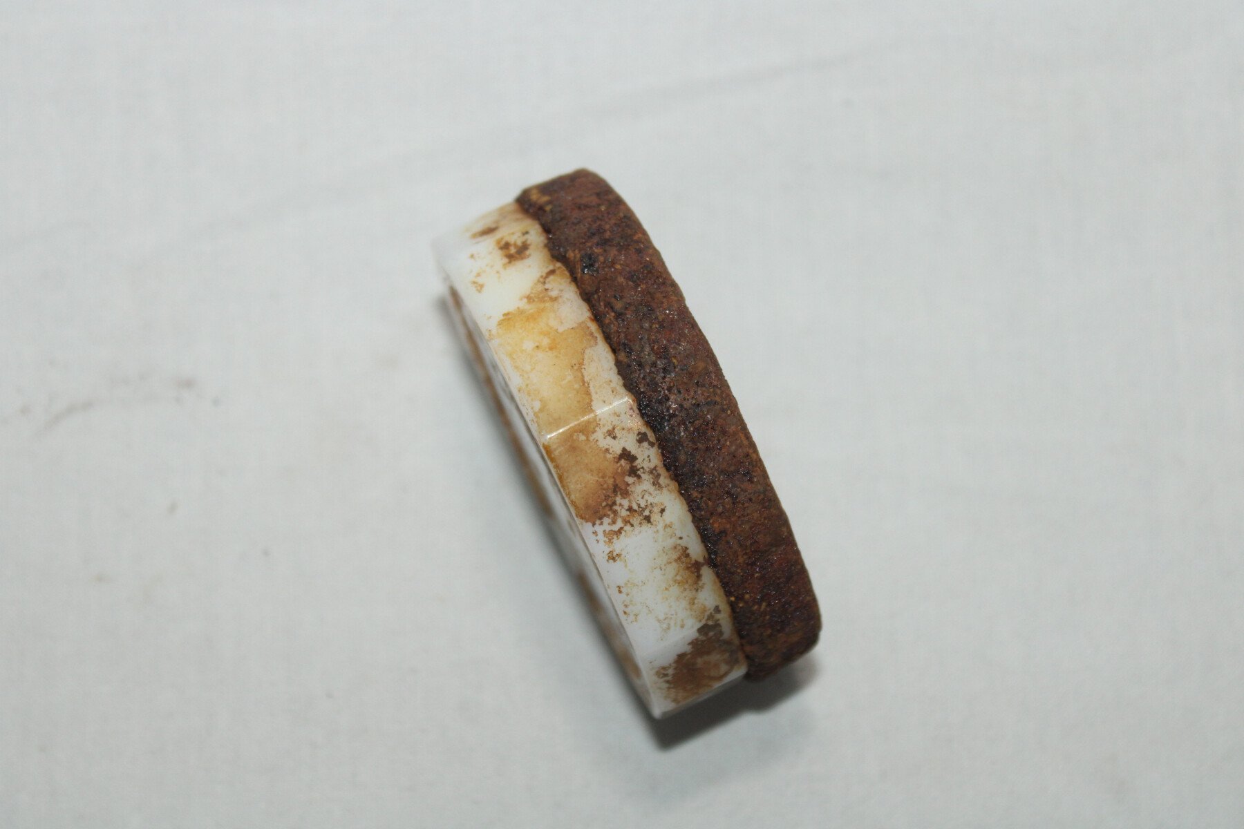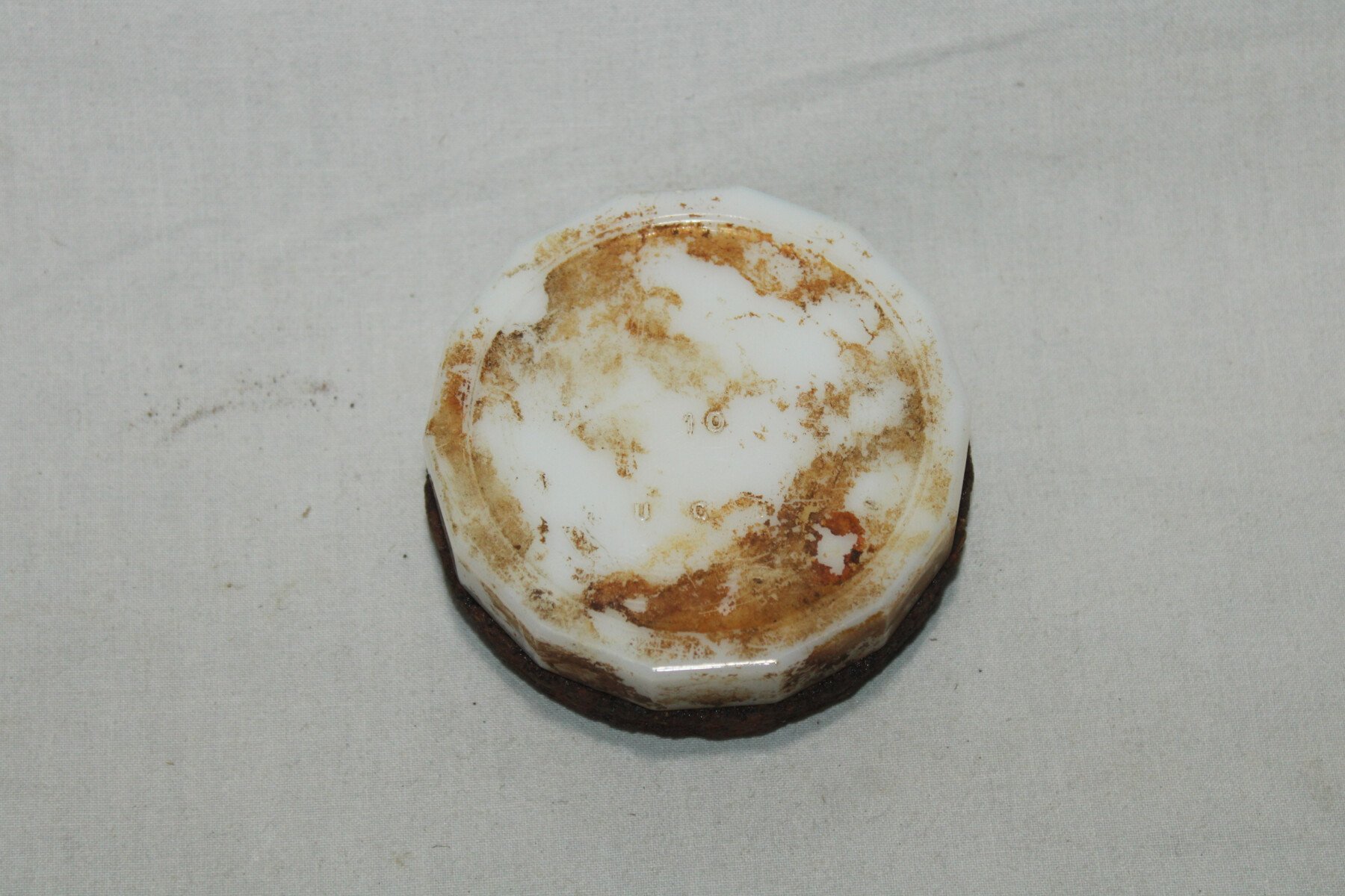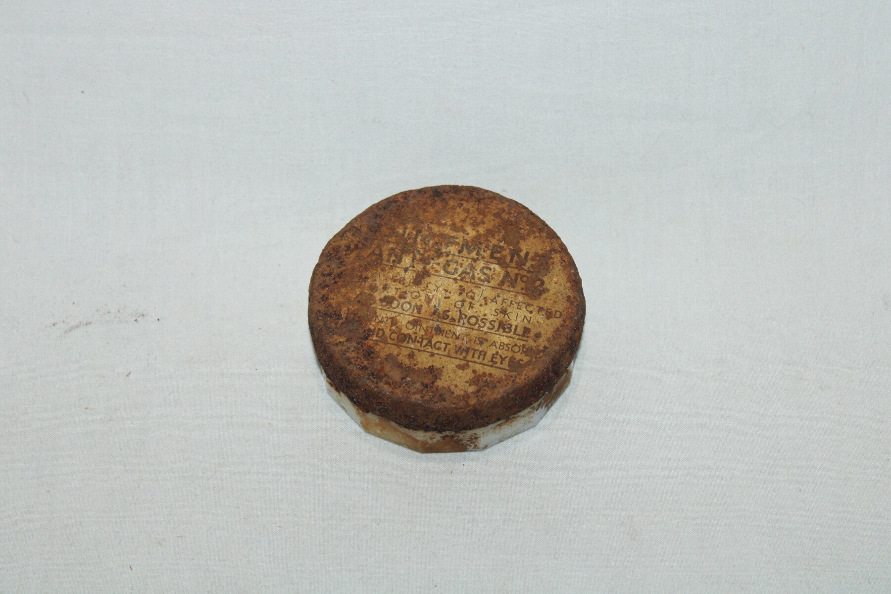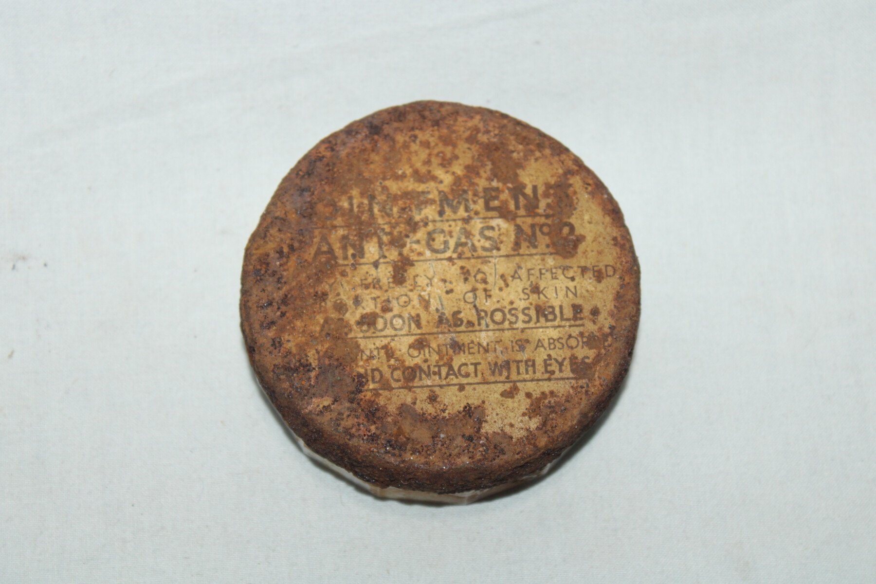 Boite de ointment anti-gas n°2 ronde. Rouille sur le couvercle.