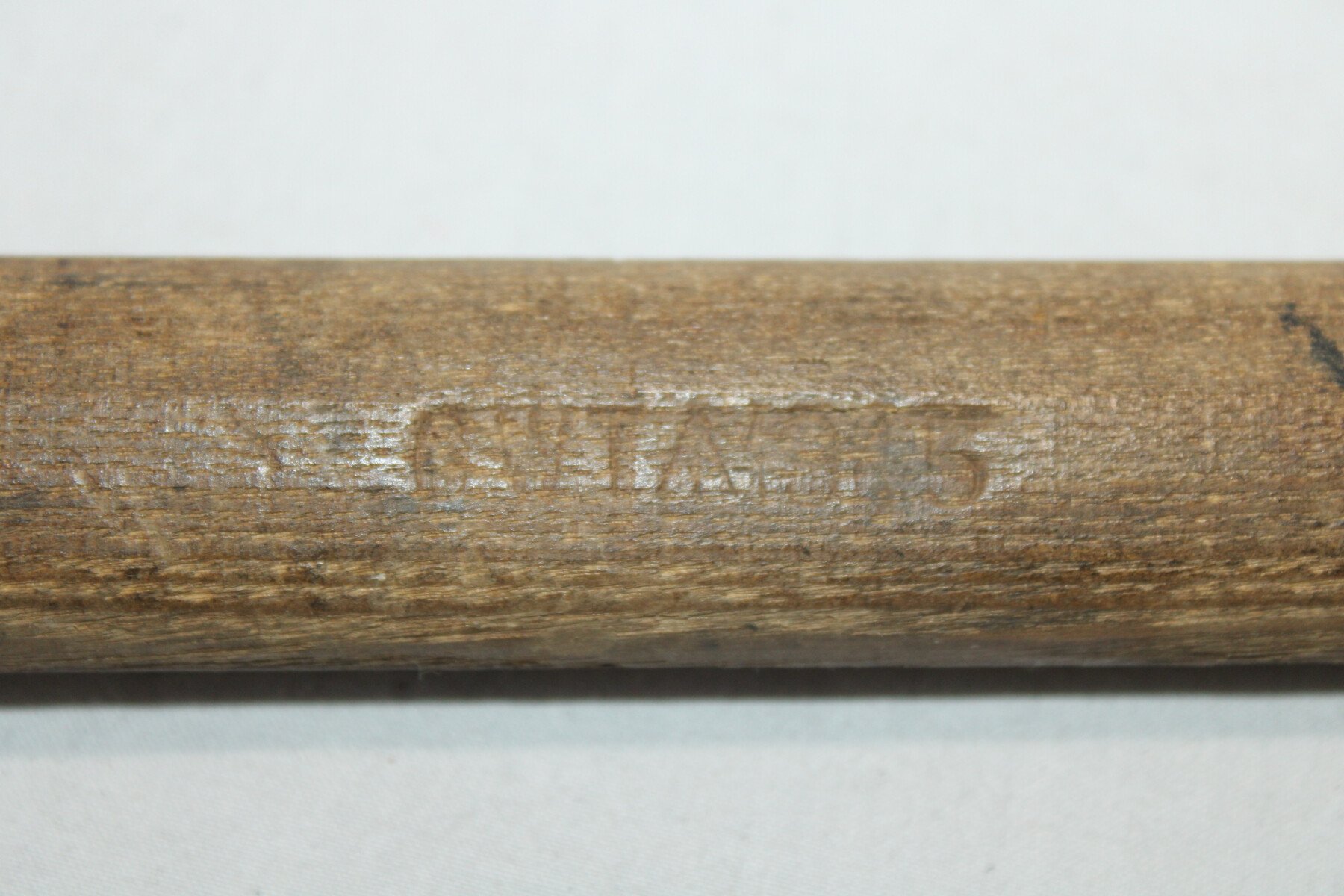 Ensemble outil pelle avec manche 2eme modèle. La housse en web et daté 1943, le fer repeint et daté 1944, le manche est daté 1945.