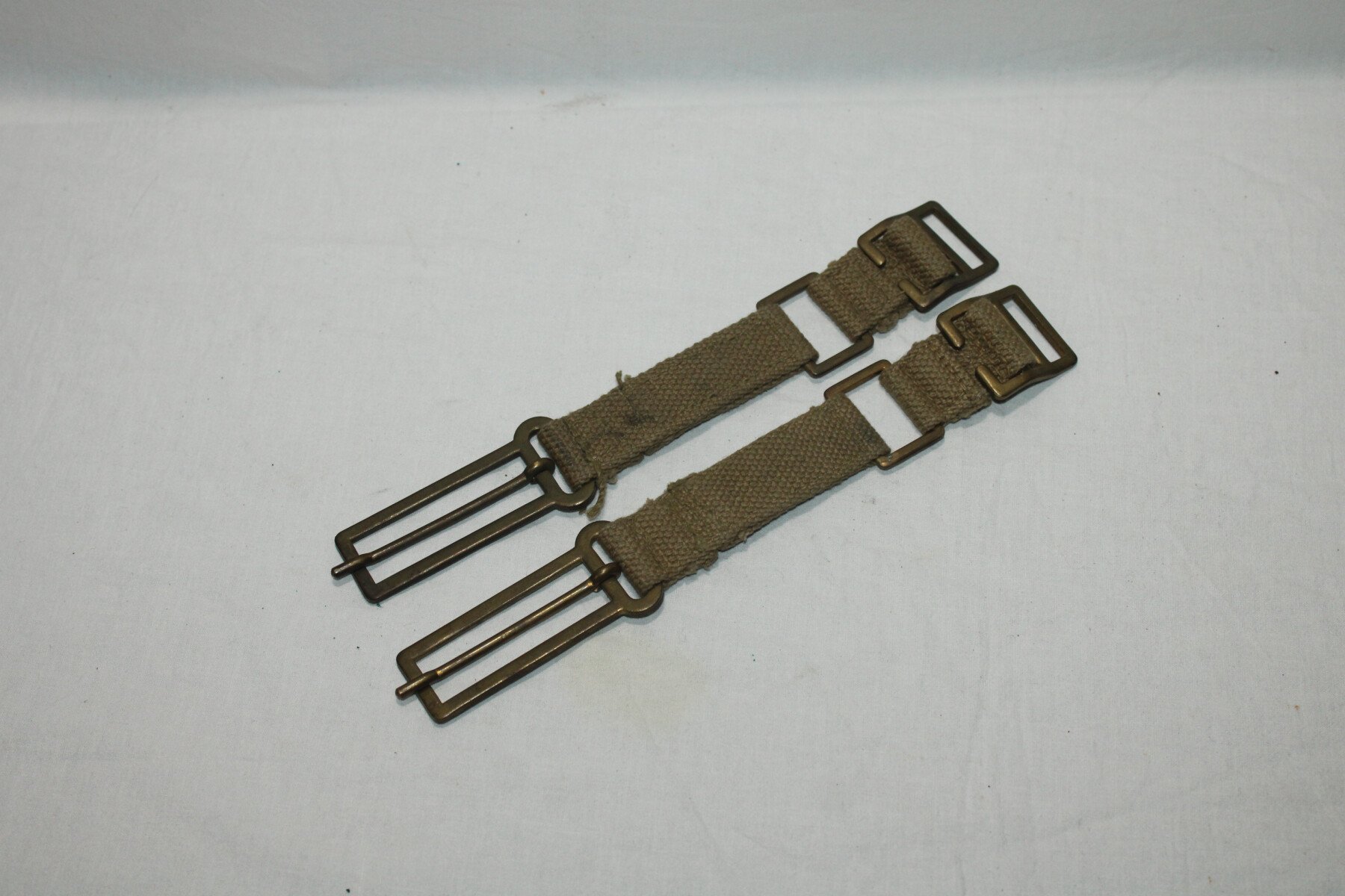 Paire d'aiguillettes daté 1943 même fabricant, bien sable. Permettant de fixer le brelage au ceinturon ou pour fixer le holster sur le ceinturon cette dernière pratique se faisait chez les SAS.