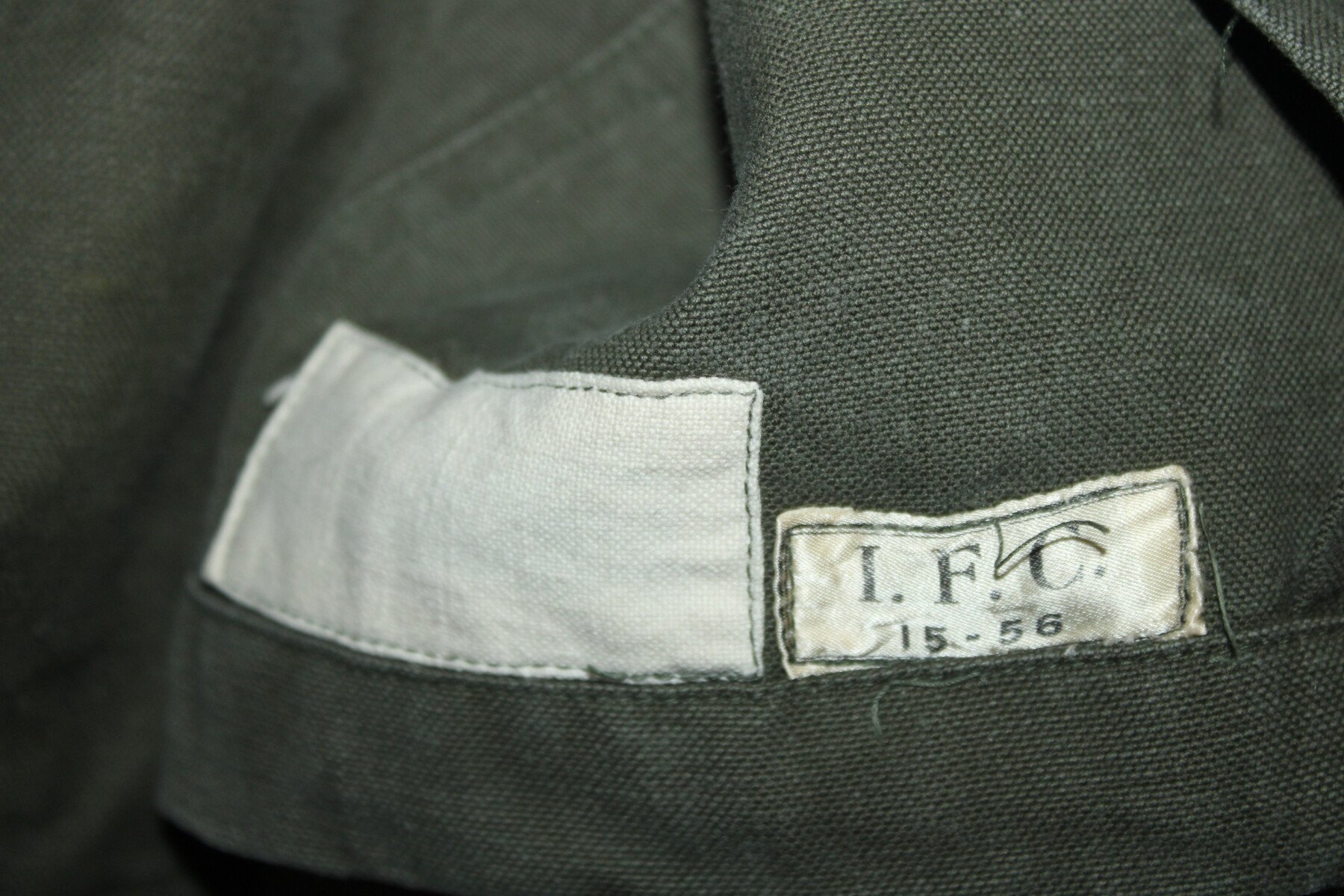Paletot modèle 1938. Tout les boutons présents. Daté 1956. Bon état général. Largeur d'épaule=43 cm, longueur de manche=67 cm.