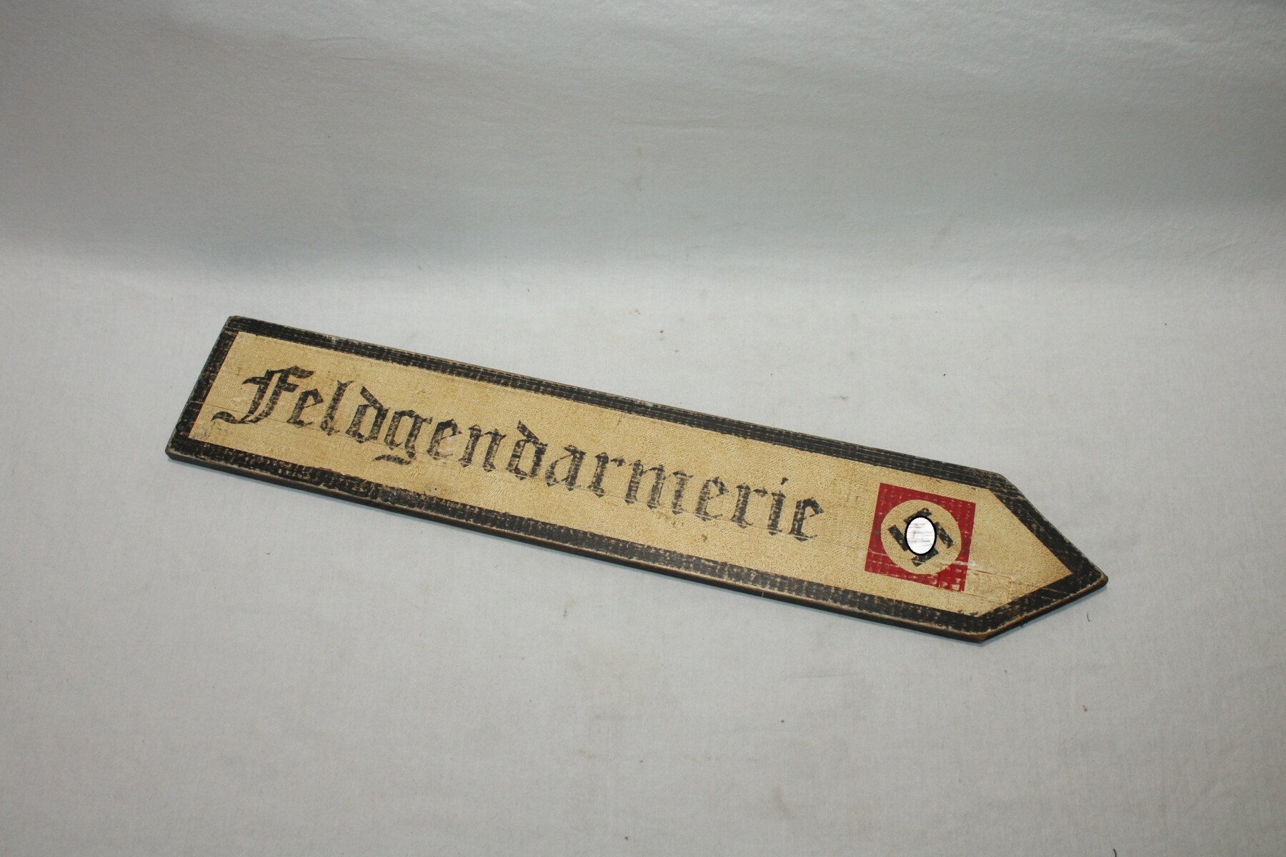 Belle reproduction d'une pancarte directionnelle de la Feldgendarmerie. Dimension=50 cm X9.,5 cm.