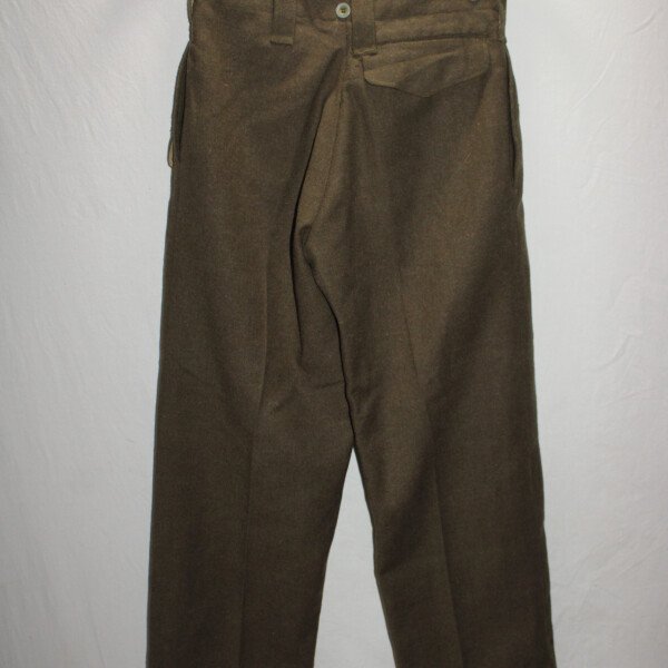 Pantalon de battle dress pattern 37 de fabrication australienne, taille 1 GB, étiquette présente. Daté 1945 Pas de tampon de date. Tour de taille à plat 38cm, longueur totale 105cm, entre jambe...