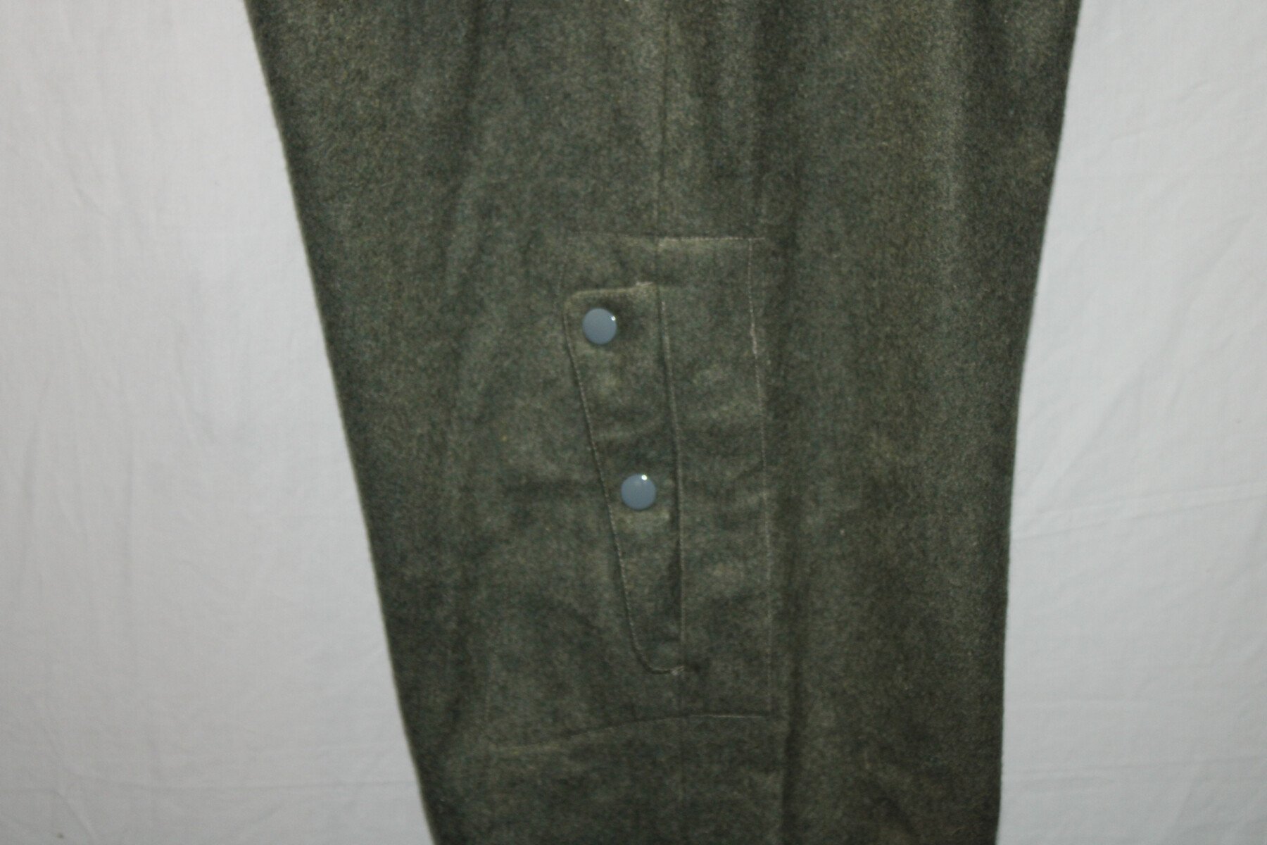 Pantalon m38 de parachutiste de couleur Feldgrau. Avec poches sur les cotés. Taille : tour de taille 48cm a plat, hauteur total 110cm, hauteur d'entrejambe 76cm.