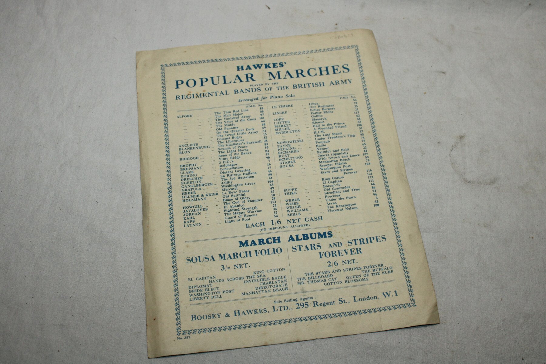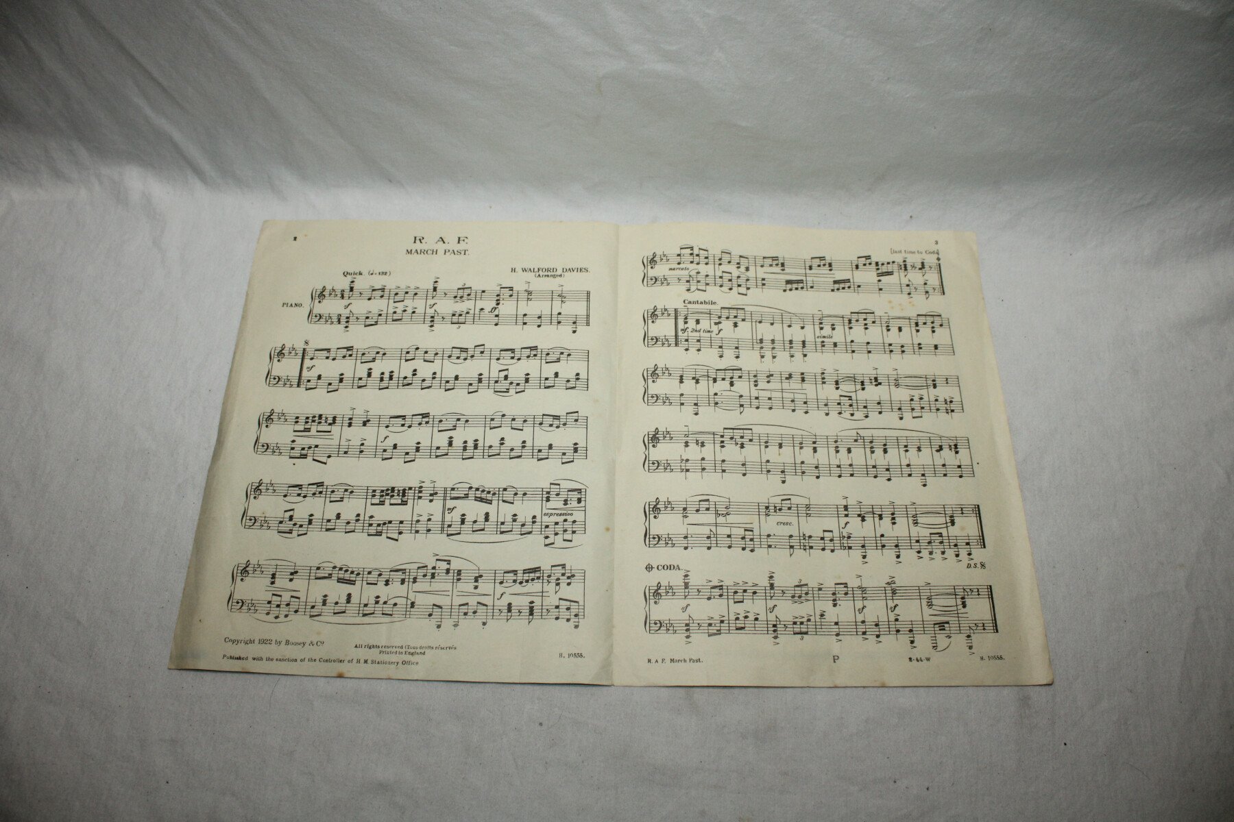 Feuillet de 4 pages sur la partition de la RAF march past. Pas de date visible.