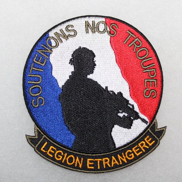 Le patch de la légion étrangère soutenons nos troupes est thermocollant ou à coudre. Il mesure 10cm X 9cm.