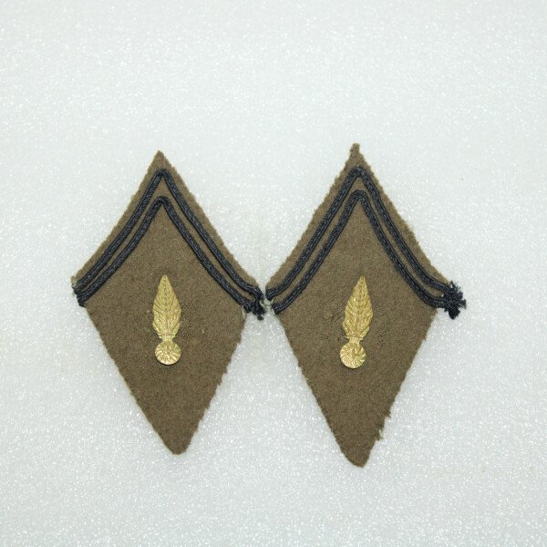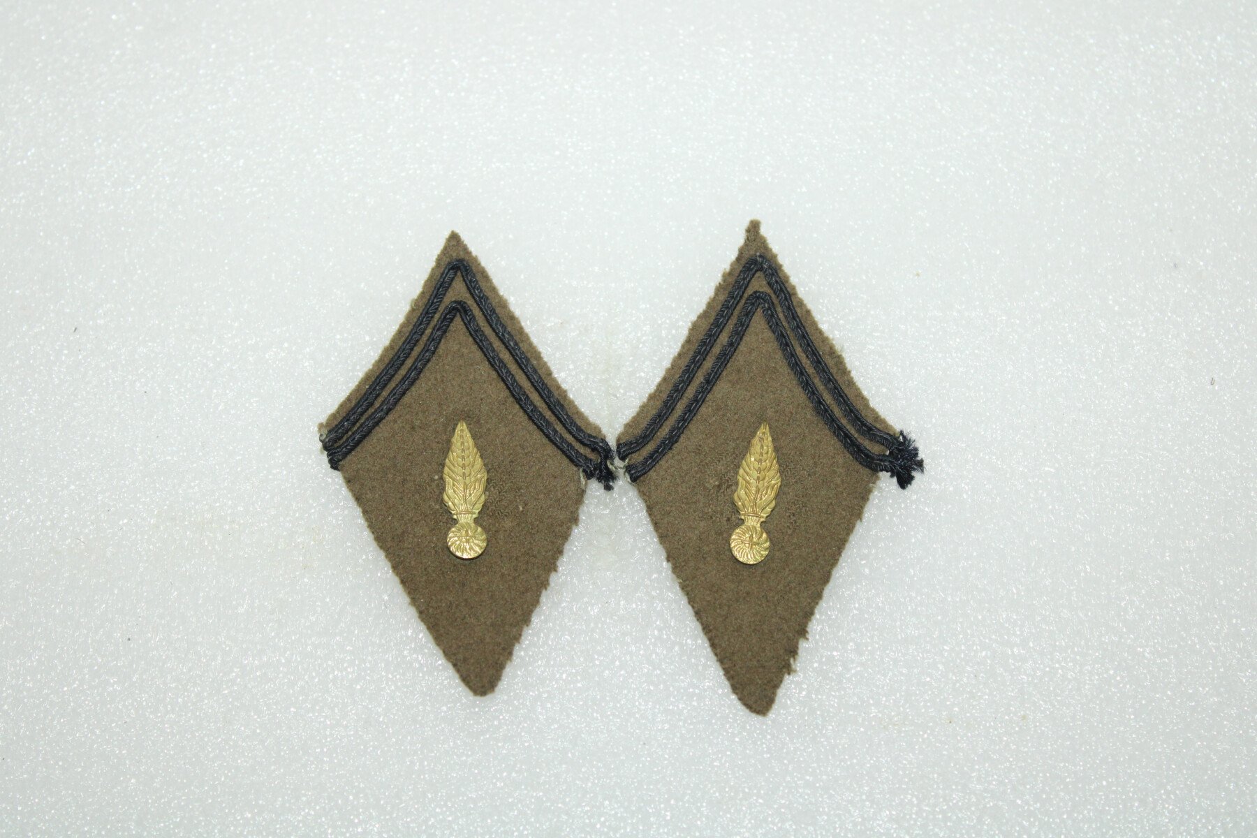 Paires de pattes de col aiglons d'officier d'infanterie non brevetés, grenades métalliques.
