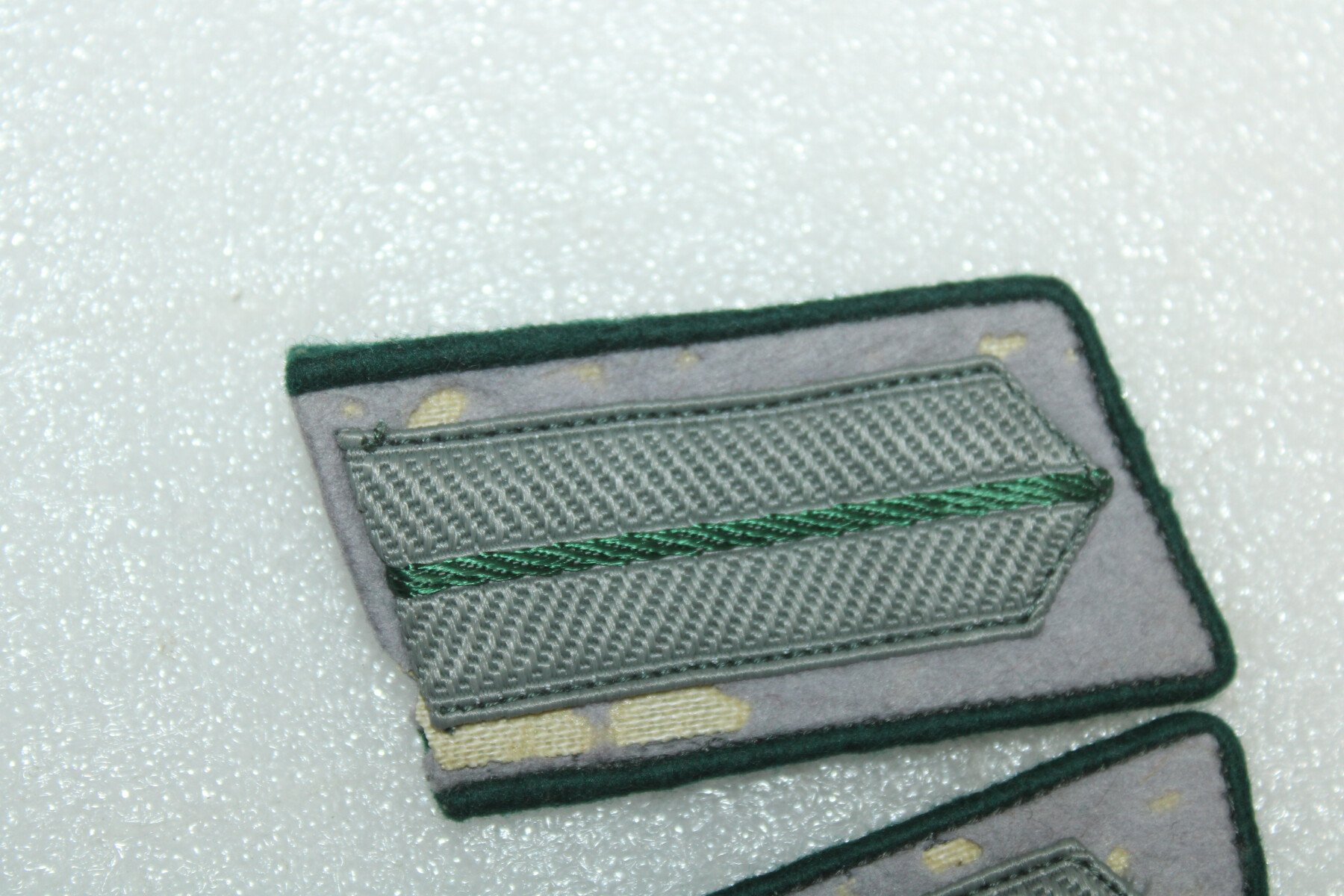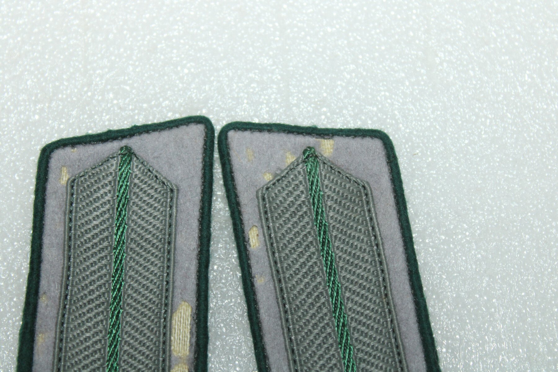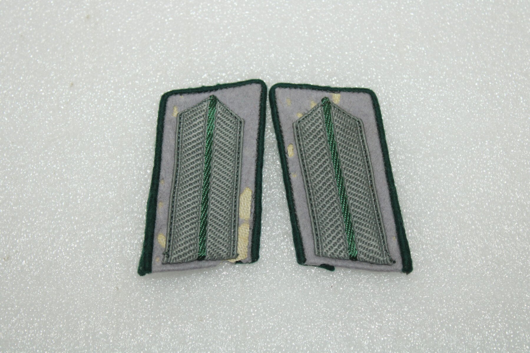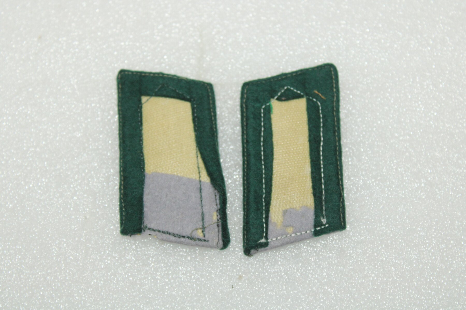 Paire de pattes de col Zonderfuher. Fond gris abimé. Les Zonderfuhrer étaient des civils recrutés comme officiers pour leur compétence dans un domaine où l'armée n'avait pas assez de spécialistes (ingénieurs météo, photographes, radaristes, vétérinaires, médecins, électro-techniciens, etc.).