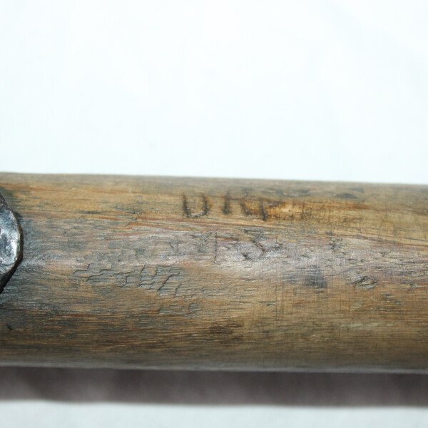 Pelle de véhicule allemande, fer et bois marqué et daté 1943. Fissuré sur le haut. taille total 110cm