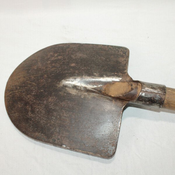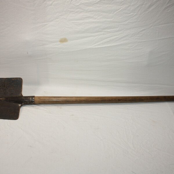 Pelle ronde portative modèle 1916, fer marqué et daté 1936. Reste de peinture sur le fer. Taille total 110cm. Possible réutilisation armée allemande.