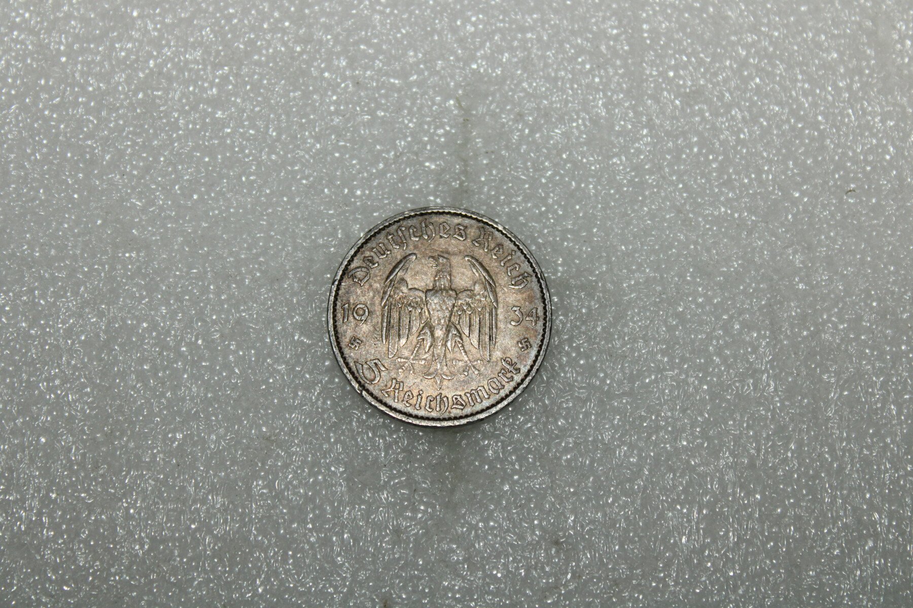 Pièce en argent de 5 reichsmarks de 1934. lettre A sur la face arrière.