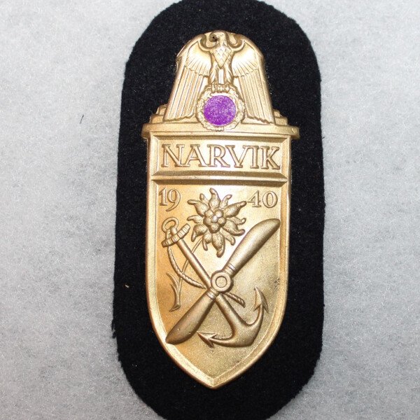 Fabrication en métal de la plaque de Bras Narvik avec contrefort en tissu .version pour la marine de guerre La plaque fut instauré le 19 aout 1940 pour les combattants de la Heer...