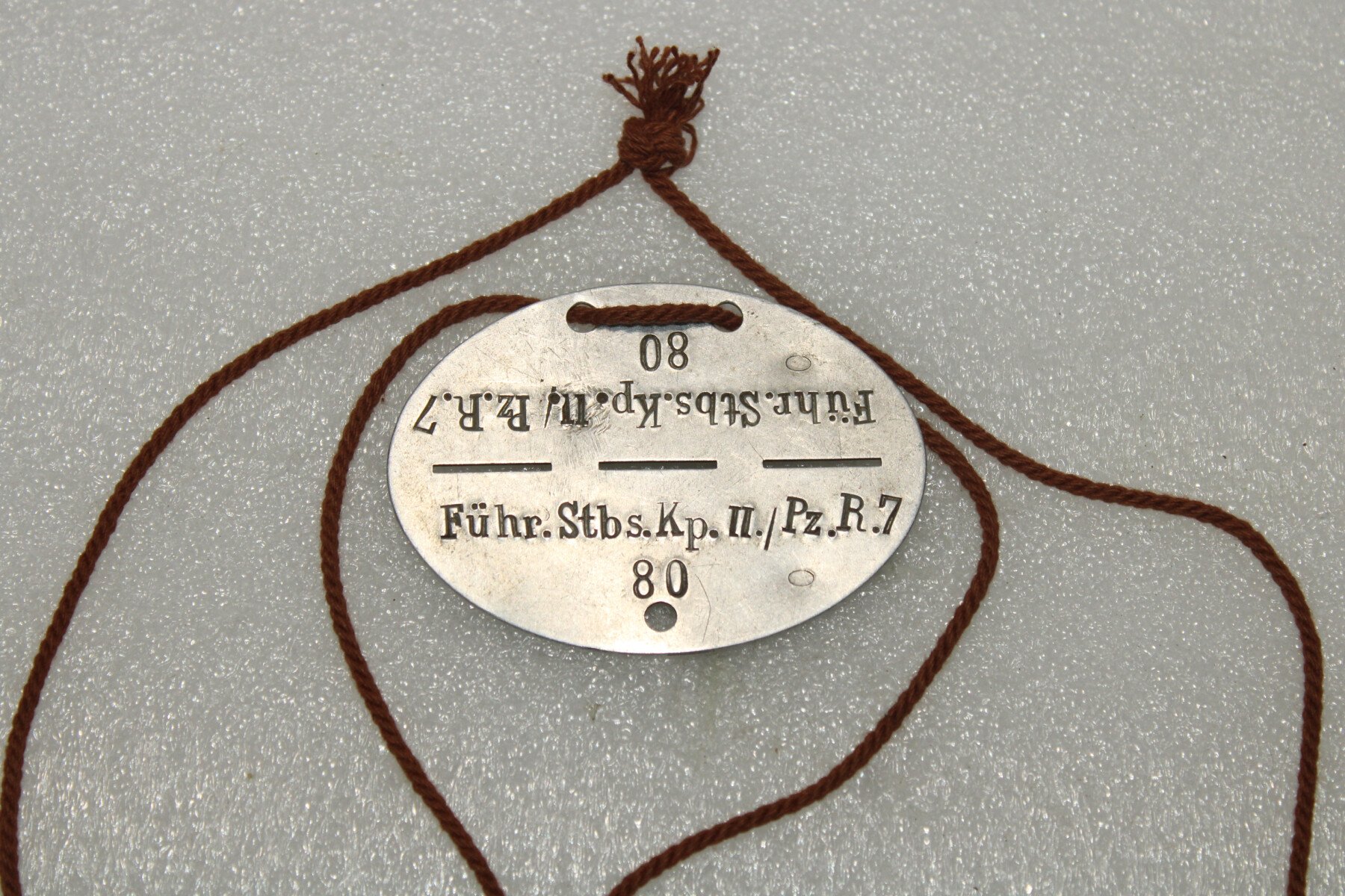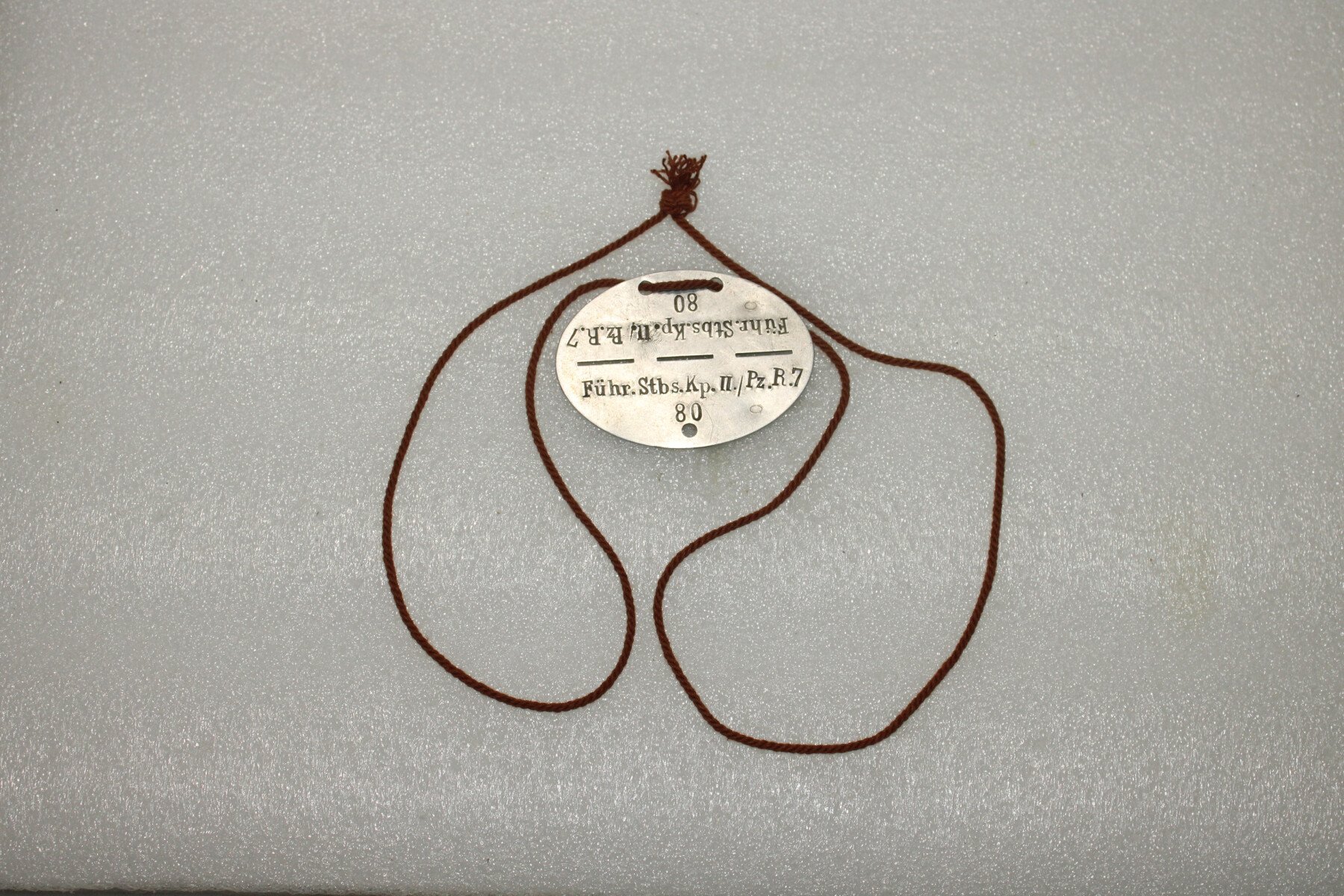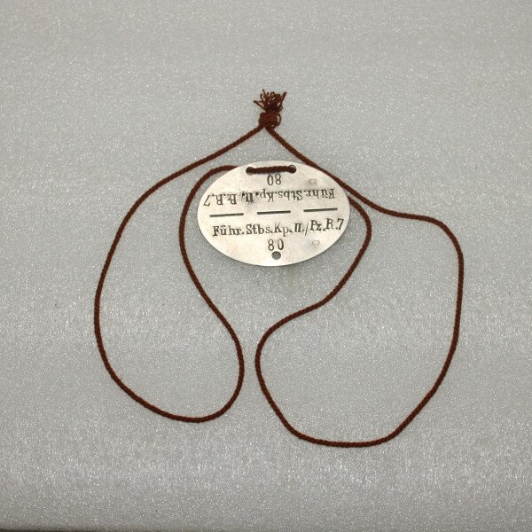 Plaque d'identité Marqué Fuhr.Stbs.kp.II/PZ.R7. avec sa corde.