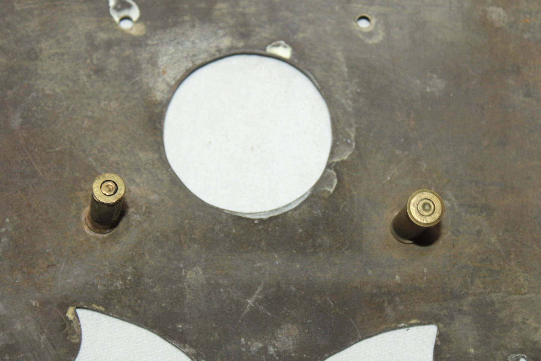 Plateau marqué souvenir de la guerre Boesinche (Nord de Ypres en Belgique). 4 balles de 7.65 servent de pied.