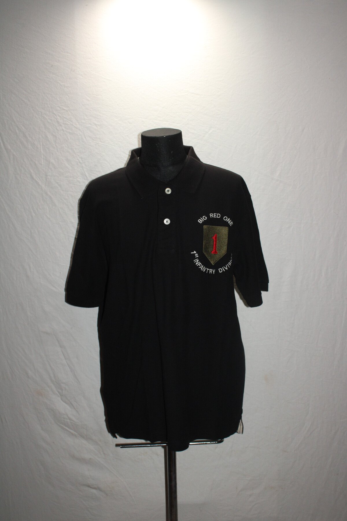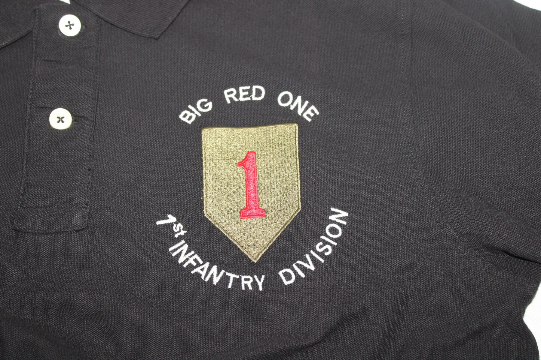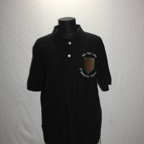 Ce polo est brodé de l'insigne de la 1ère division d'infanterie américaine ( la fameuse Big red One) sur la poitrine.