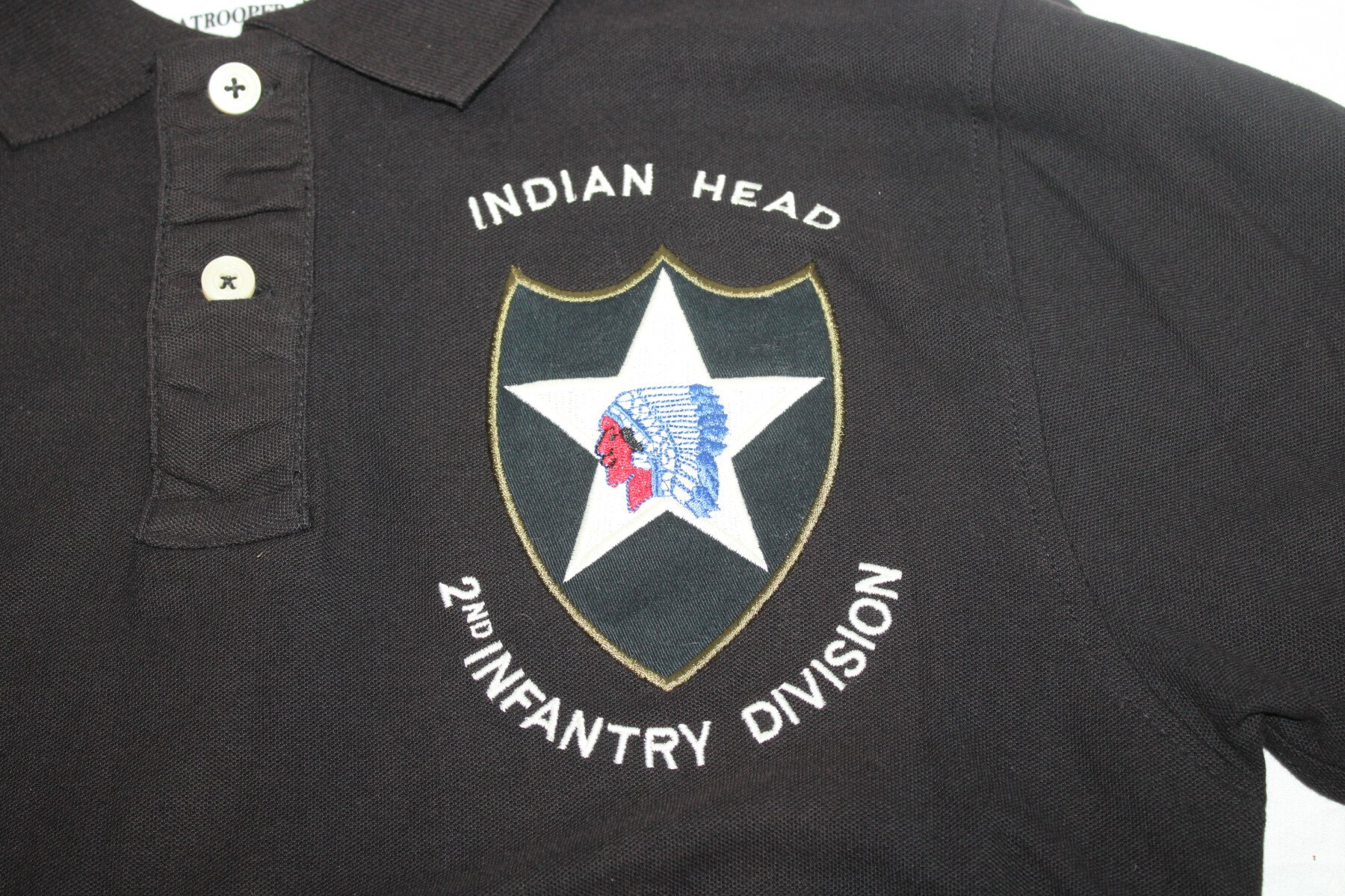 Ce polo est brodé de l'insigne de la 2ème division d'infanterie américaine ( la fameuse Indianhead) sur la poitrine.