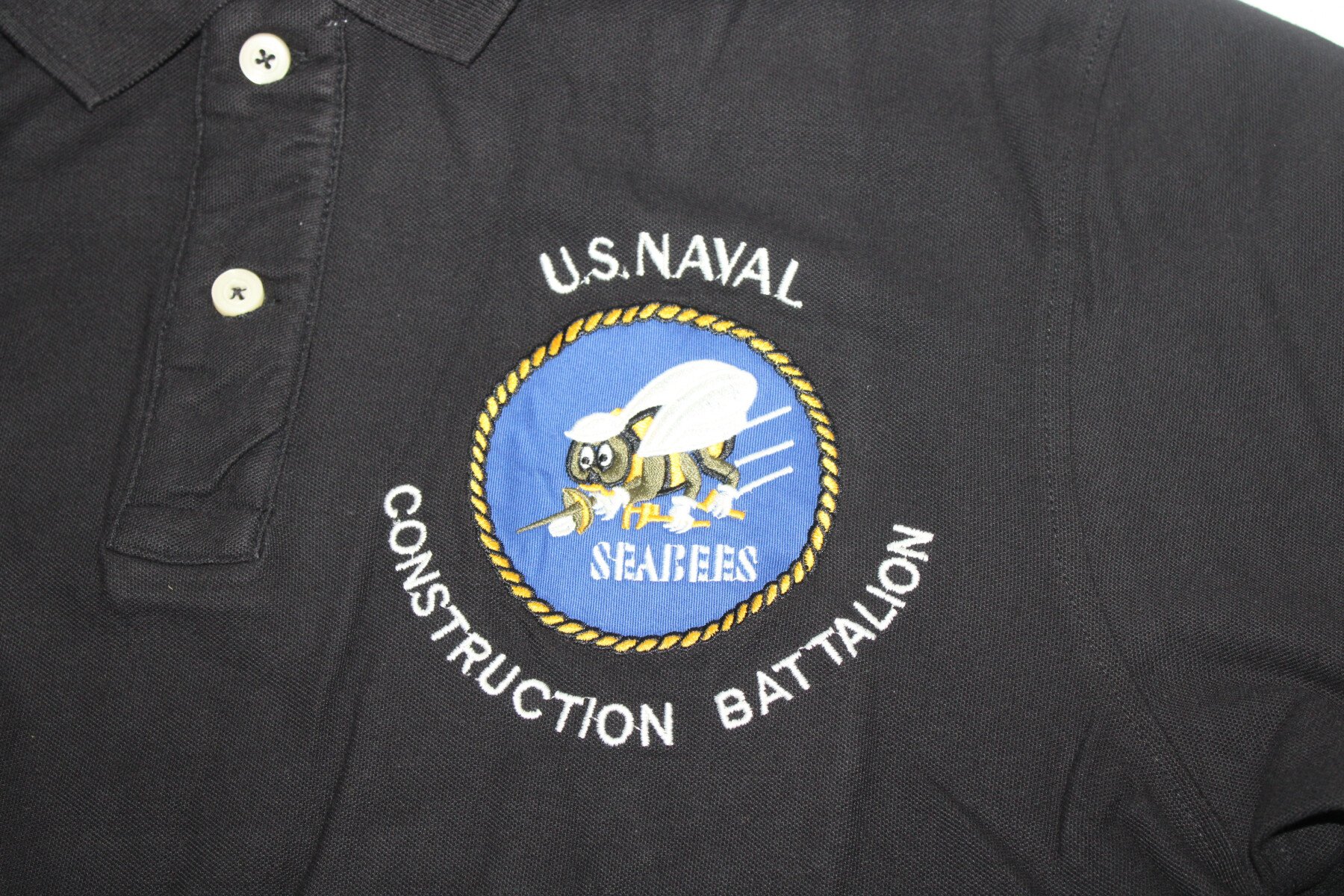 Ce polo est brodé de l'insigne de l' US Naval Construction battalion, les fameux Seabees, sur la poitrine.