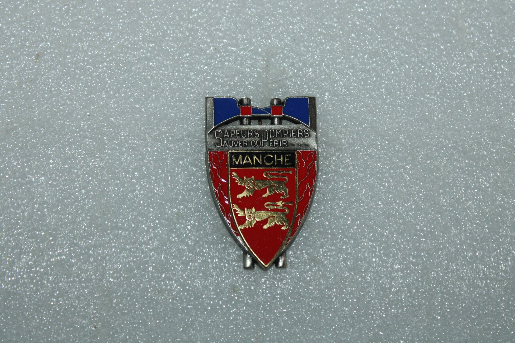 Insigne des Sapeurs pompiers de la Manche (50), fabrication Y.Delsart Sens.