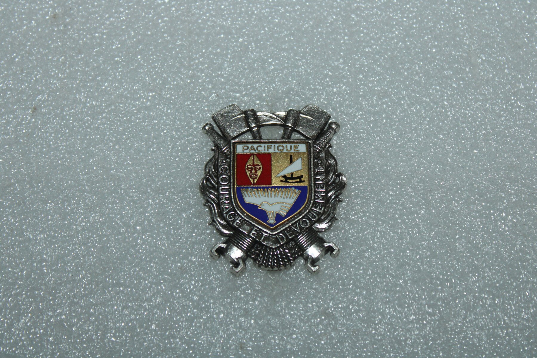 Insigne des Sapeurs pompiers du Pacifique, fabrication Arthus Bertrand Paris.