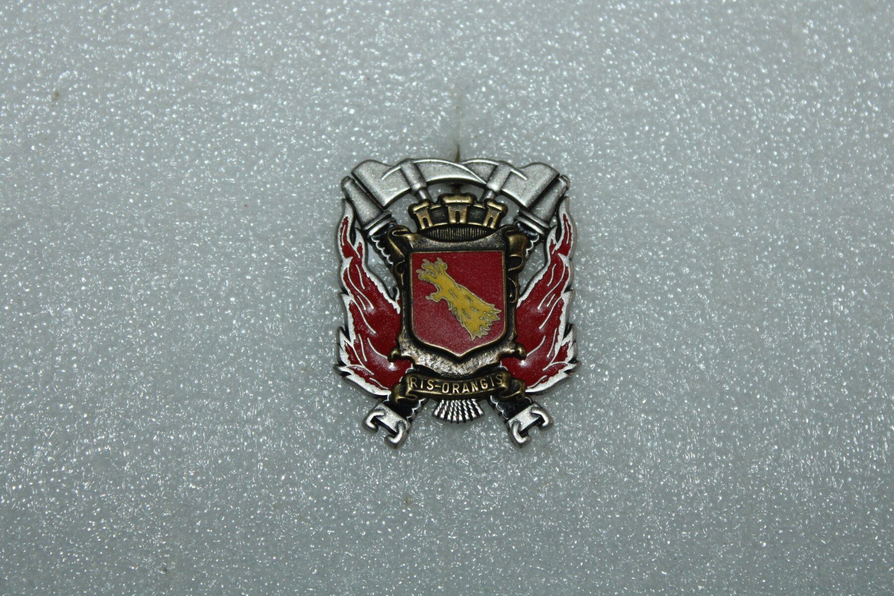 Insigne des Sapeurs pompiers de Ris-Orangis (91), fabrication AMC 93.