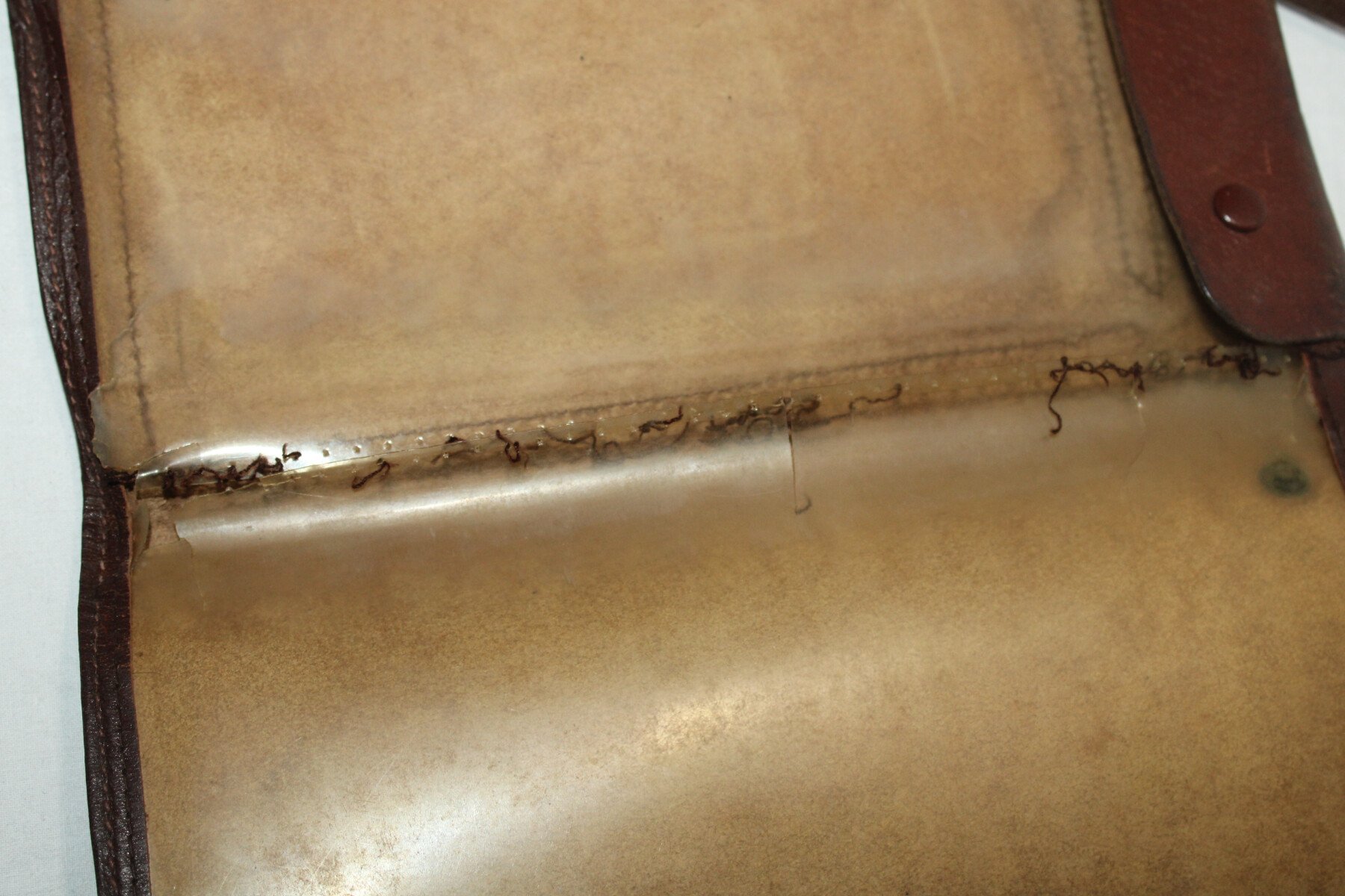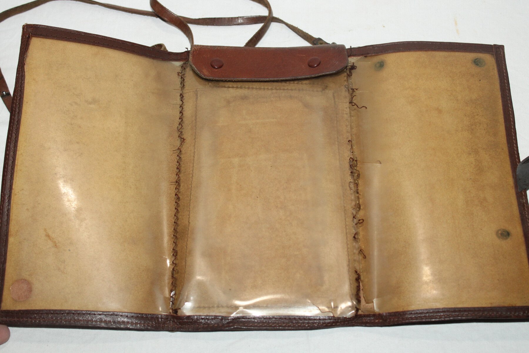 Porte carte du commerce. Complets avec sa sangle. Mica décousu sur un coté. Nominatif.