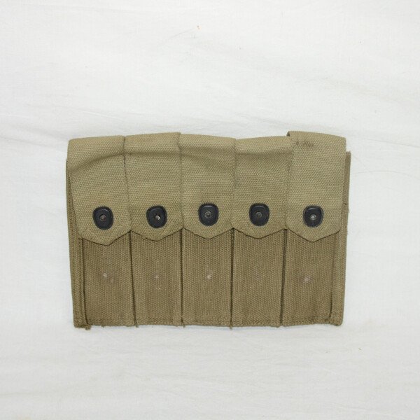 Porte chargeur pour le pistolet mitrailleur Thompson. fabrication pour l'export donc pas marqué US (destiné au prêt bail avec la Russie ) parfait état(les traces visibles sont dues au stockage ) bien d'origine.